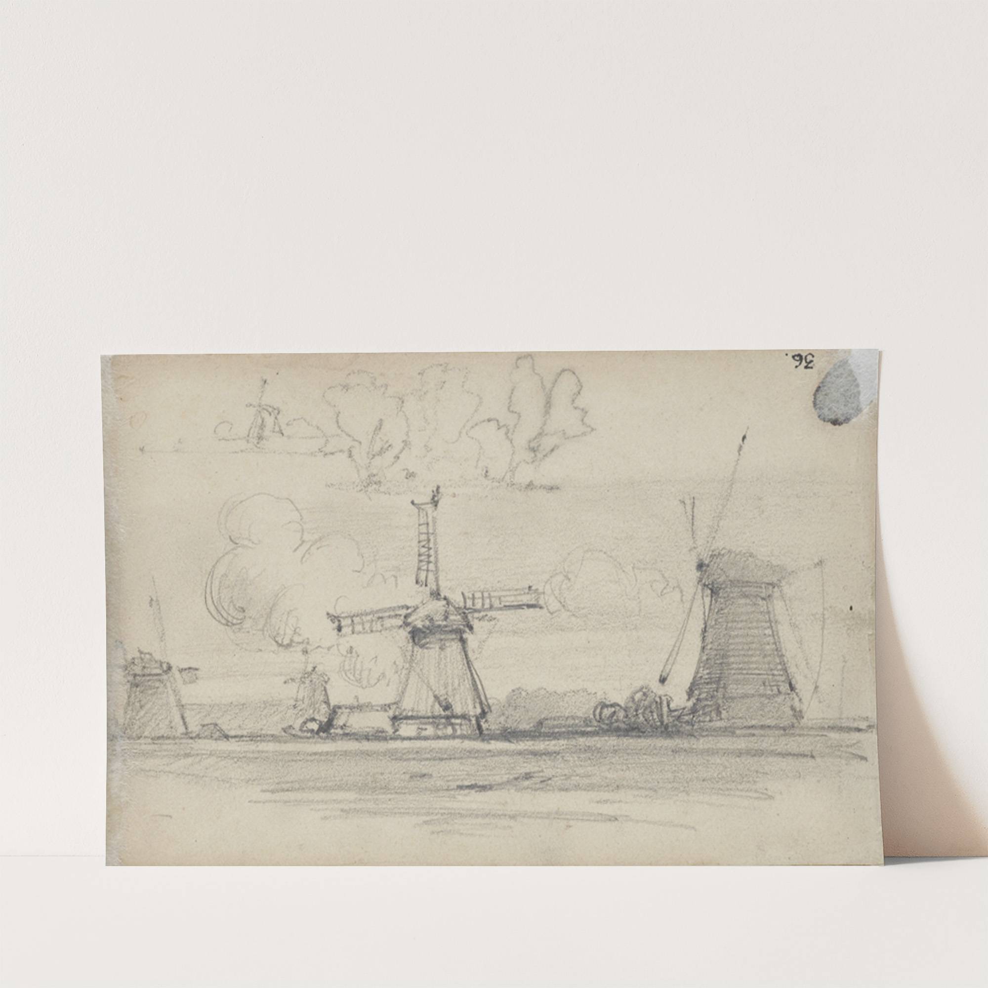 Sketch of landscape with windmills by Petrus van der Velden - Wall Art Print
