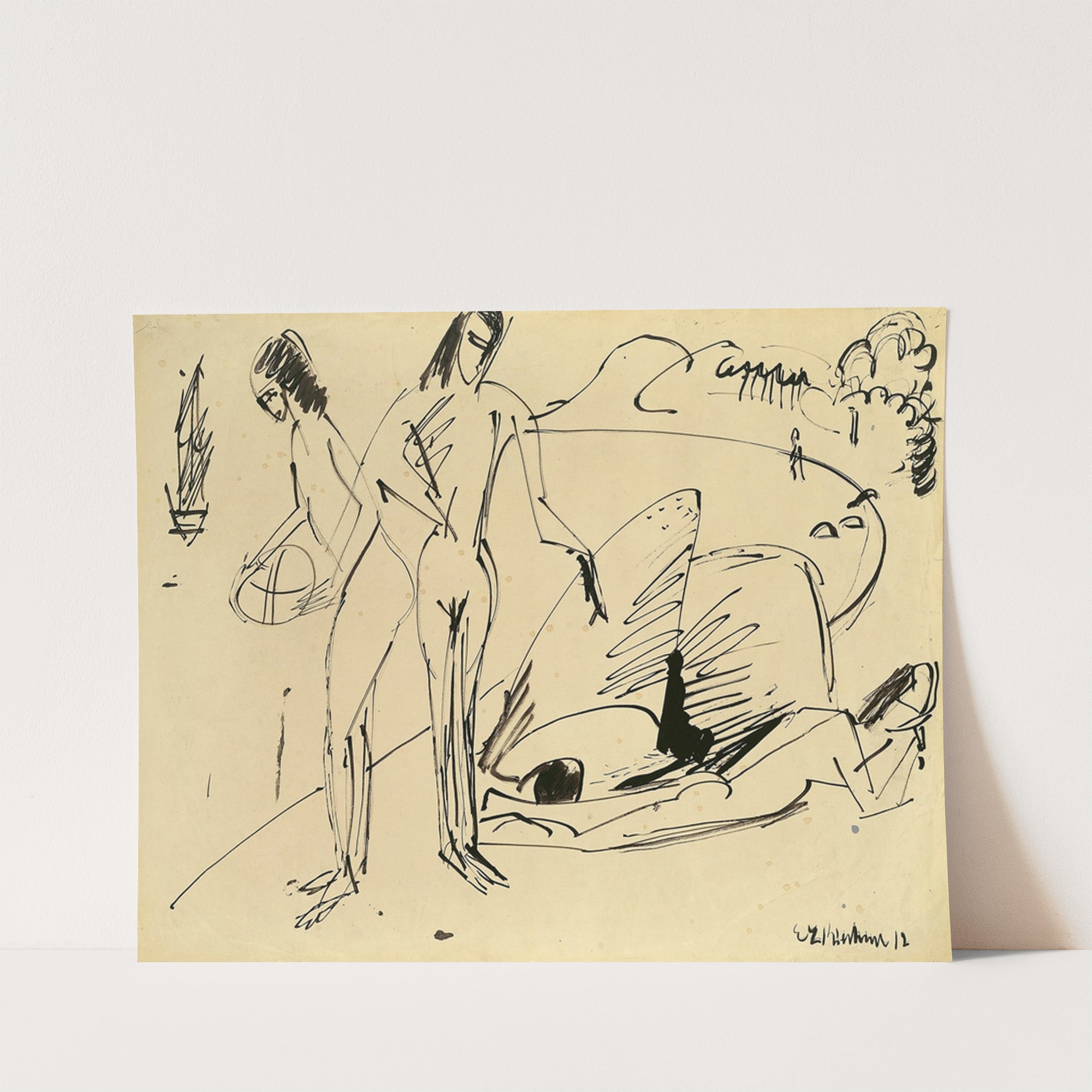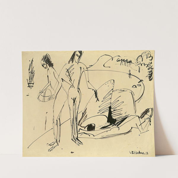 Badende am Strand von Fehmarn (1912-13) by Ernst Ludwig Kirchner - Wall Art Print