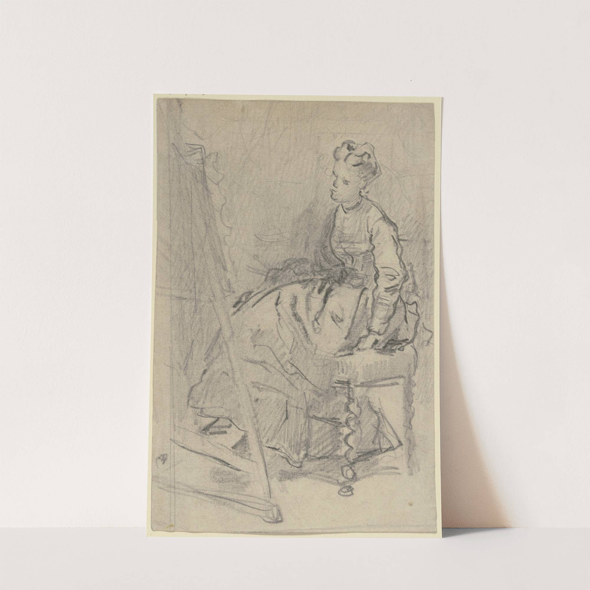 Frau vor der Staffelei sitzend by Philipp Rumpf - Wall Art Print