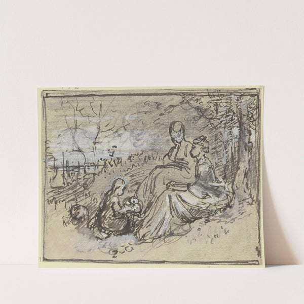 Zwei Frauen mit Kindern im Freien by Philipp Rumpf - Wall Art Print