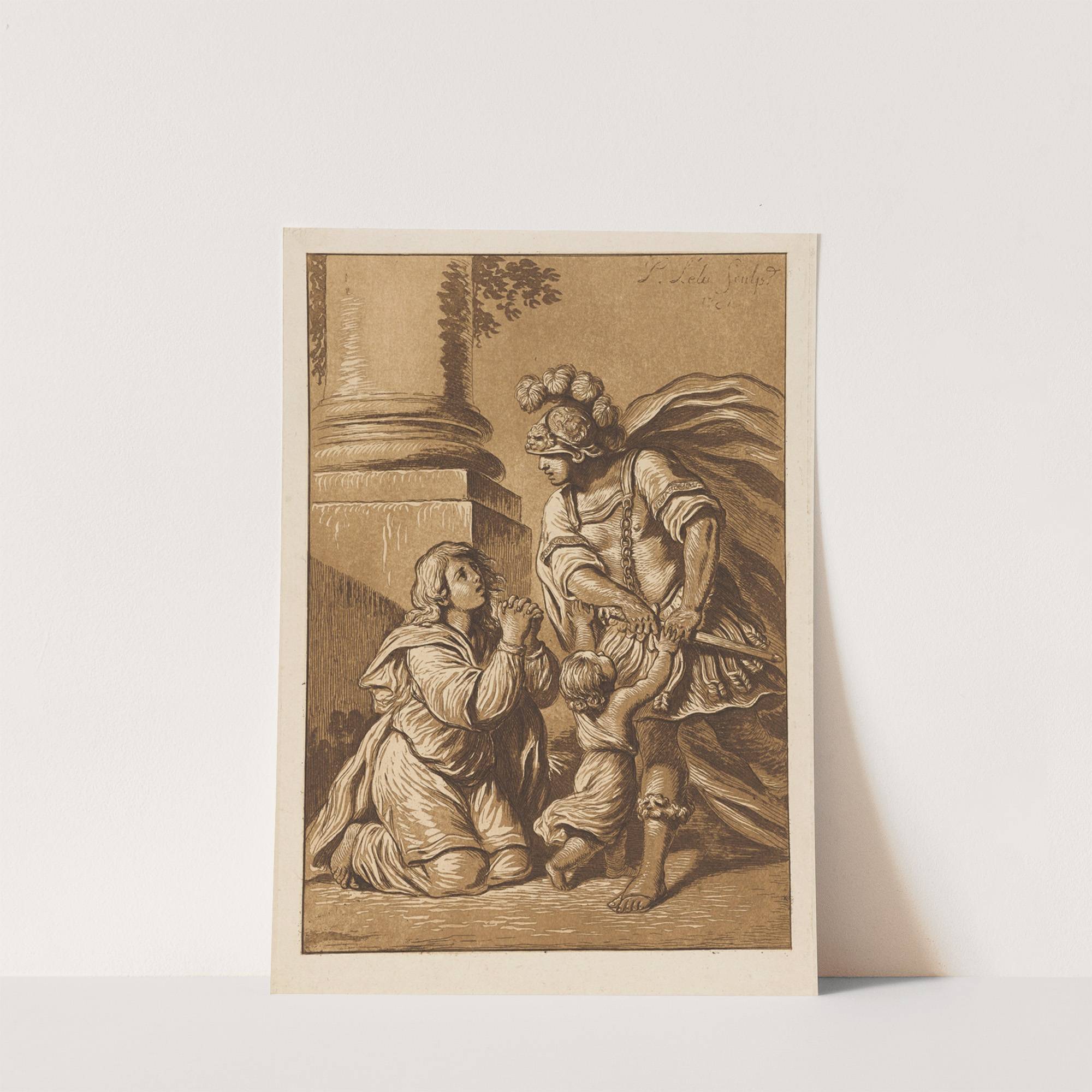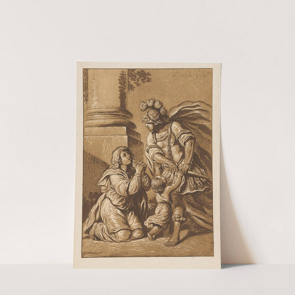 Threatening soldier with pleading wife and child (1781) by Pierre Lelu - Wall Art Print