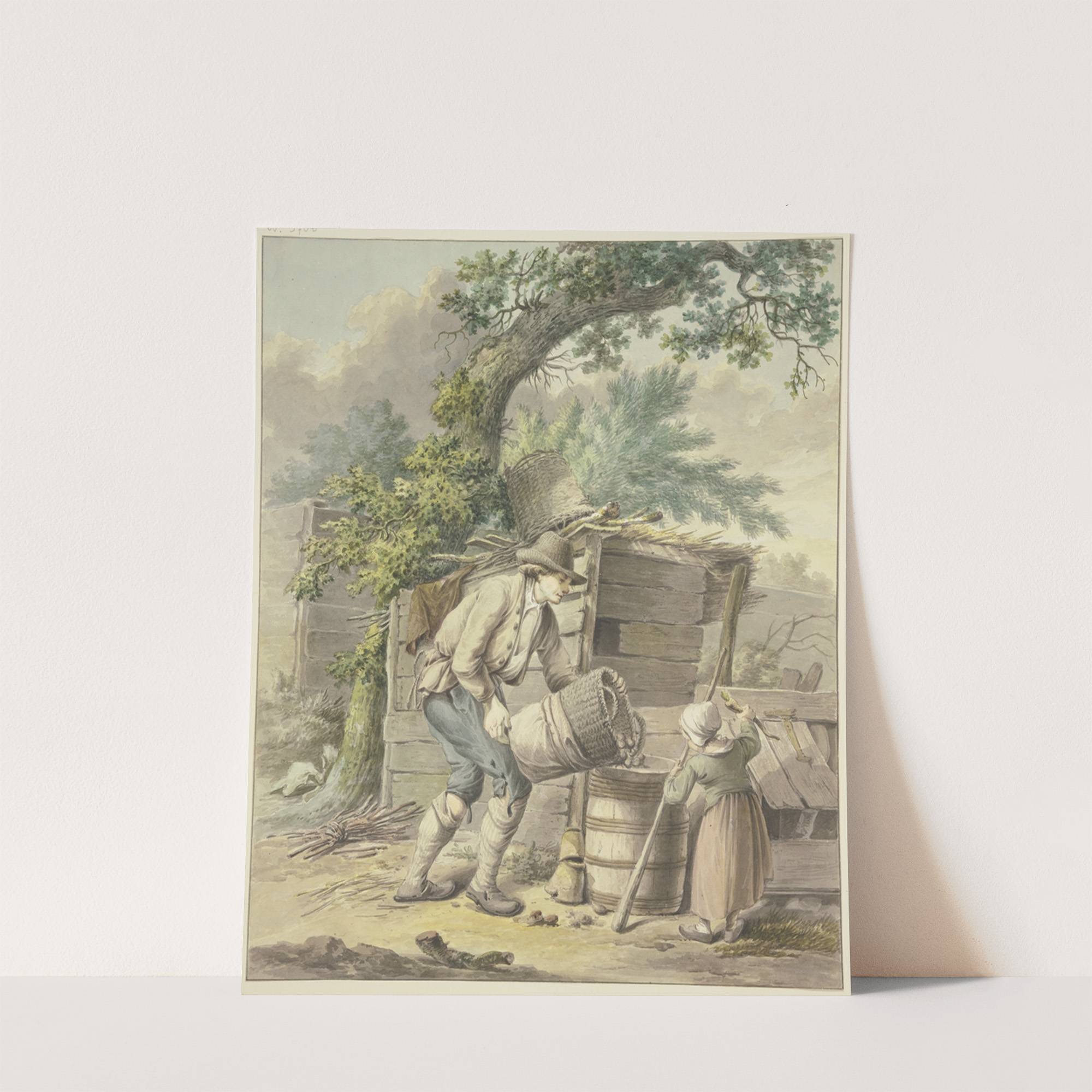 Ein Bauer schüttet Kartoffeln in ein Faß, dabei hilft ein Kind by Pieter Bartholomeusz. Barbiers - Wall Art Print