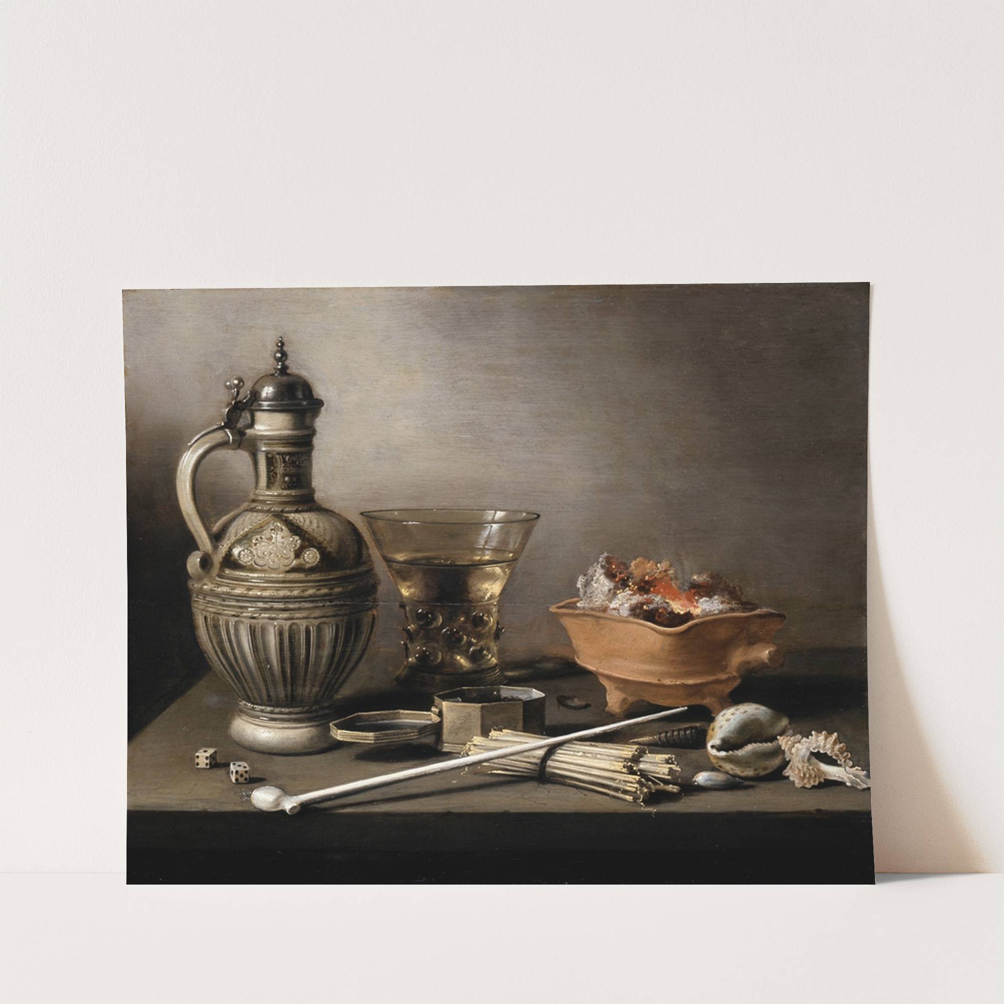 Still Life with a Stoneware Jug, Berkemeyer, and Smoking Utensils by Pieter Claesz - Wall Art Print
