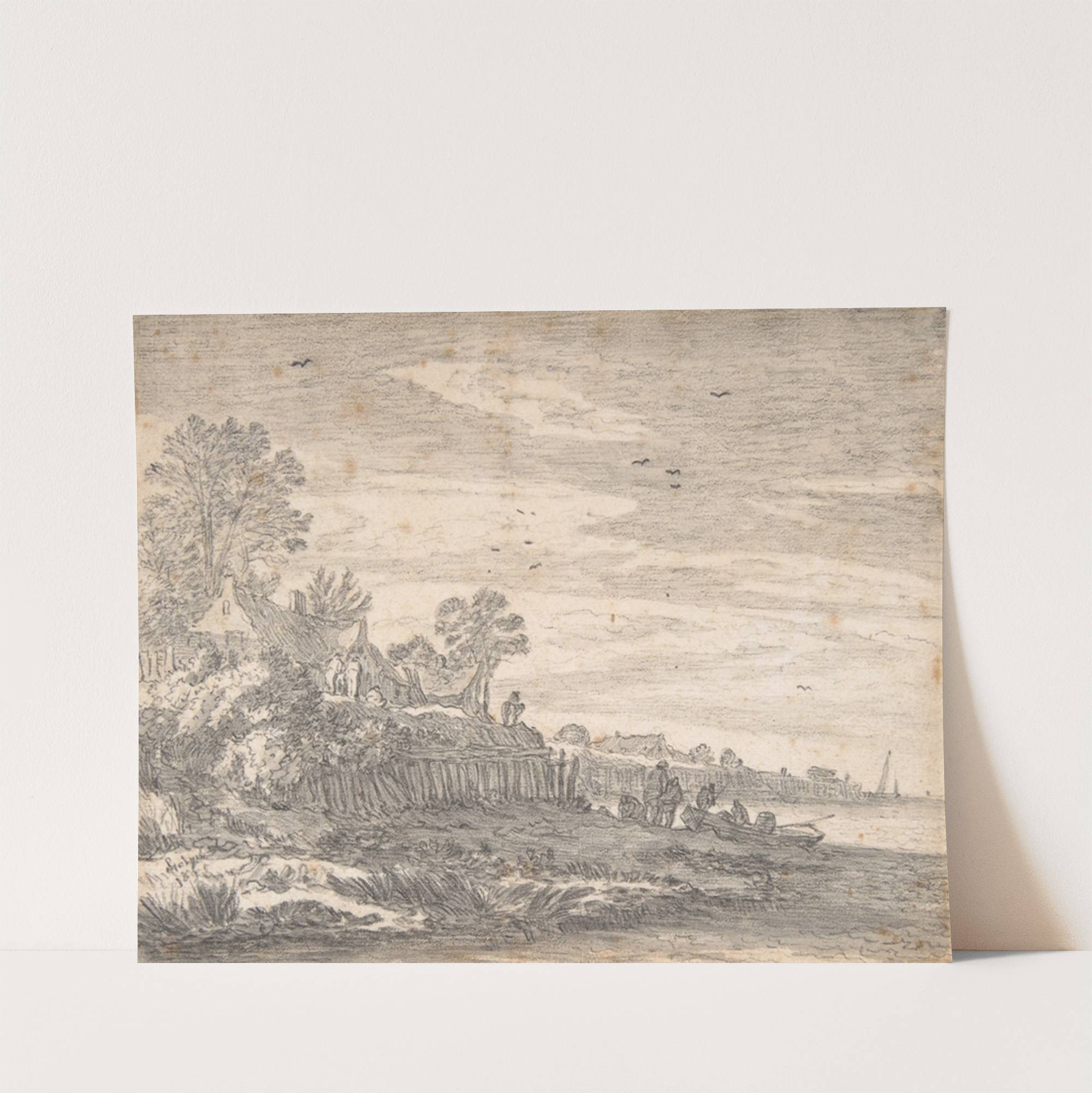 Village on an estuary, with a rowing boat on the shore by Pieter de Molijn - Wall Art Print