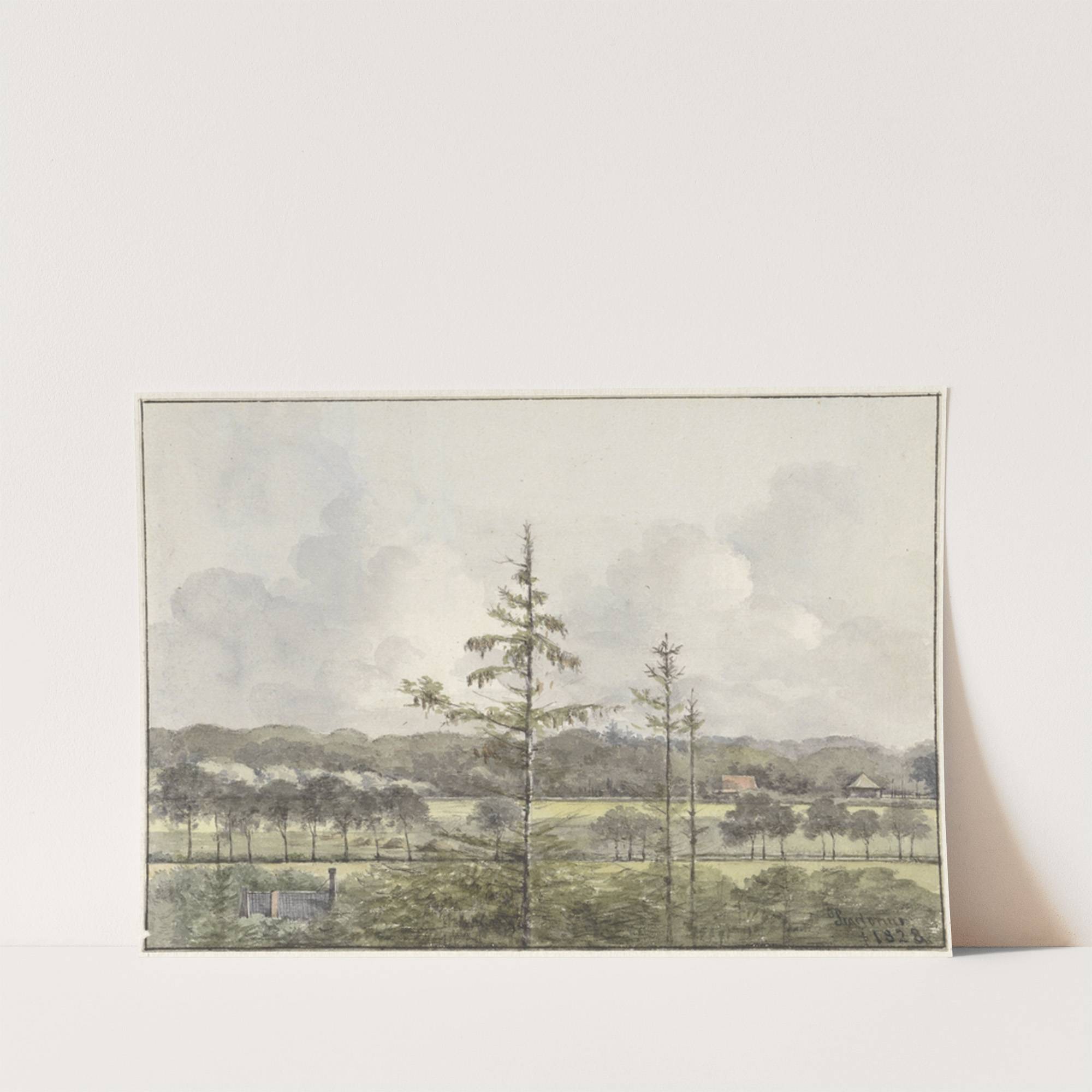 Vergezicht van weilanden met boerderijen by Pieter Ernst Hendrik Praetorius - Wall Art Print
