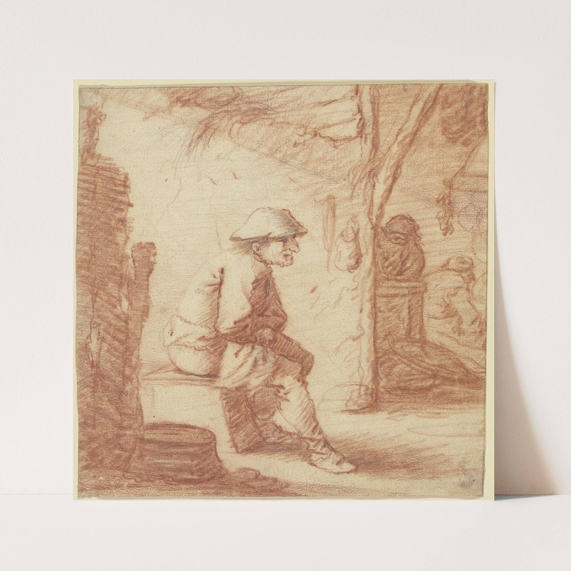 Sitzender Mann, Aussicht auf Küche mit zwei Figuren by Pieter Jansz. Quast - Wall Art Print