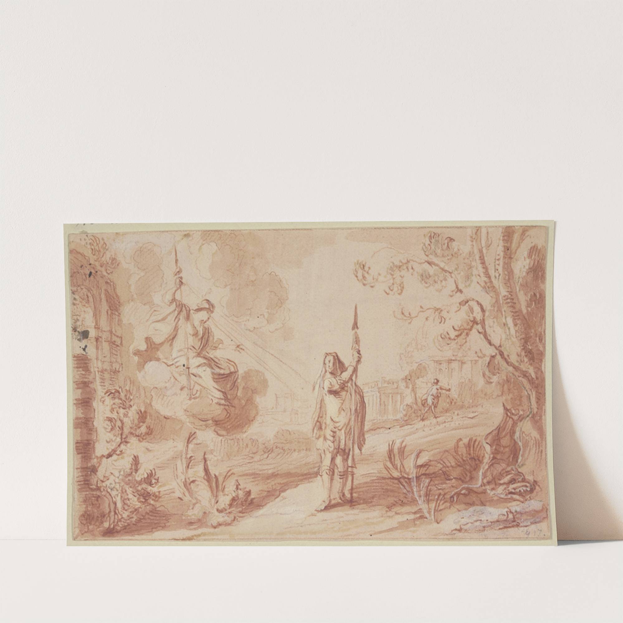 Ein Krieger vor einer Göttin auf Wolken by Pieter Tanjé - Wall Art Print