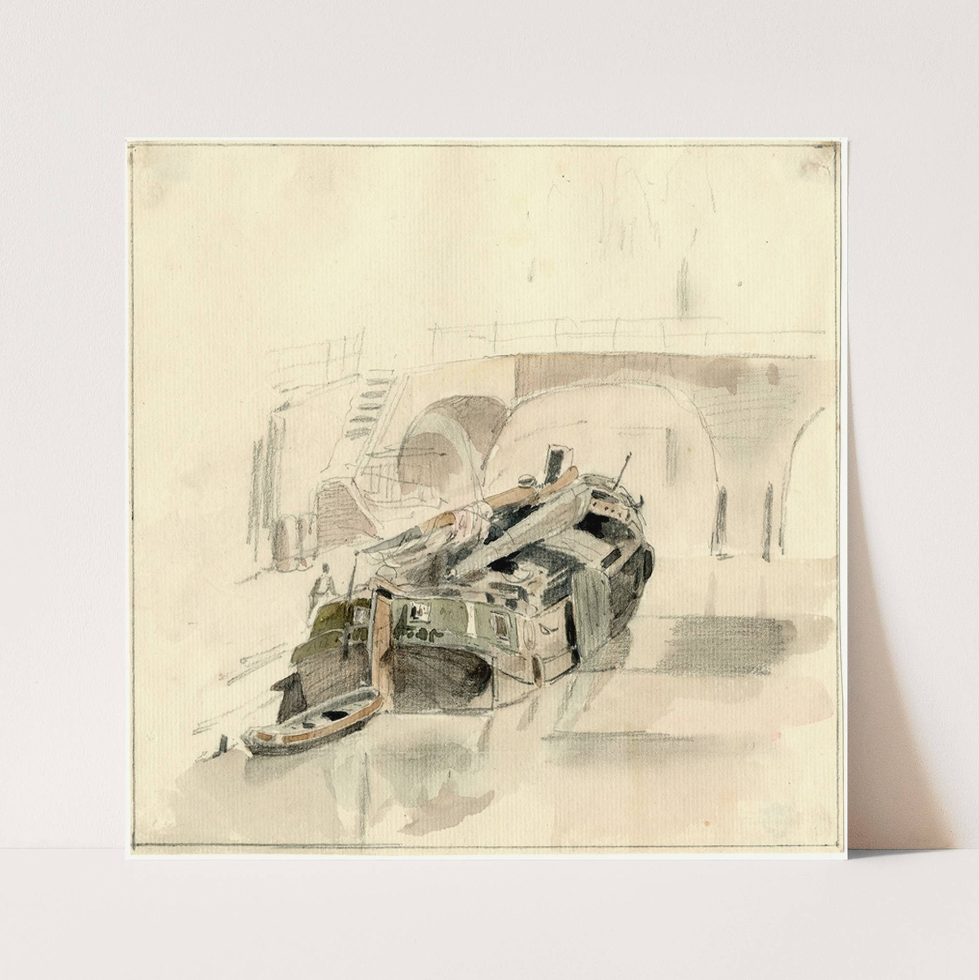 Binnenvaartschip aan de kade bij een brug, Utrecht by Pieter van Loon - Wall Art Print