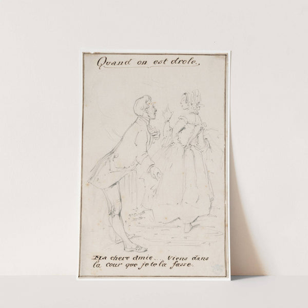 Karikatuur, man maakt vrouw het hof by Pieter van Loon  - Wall Art Print