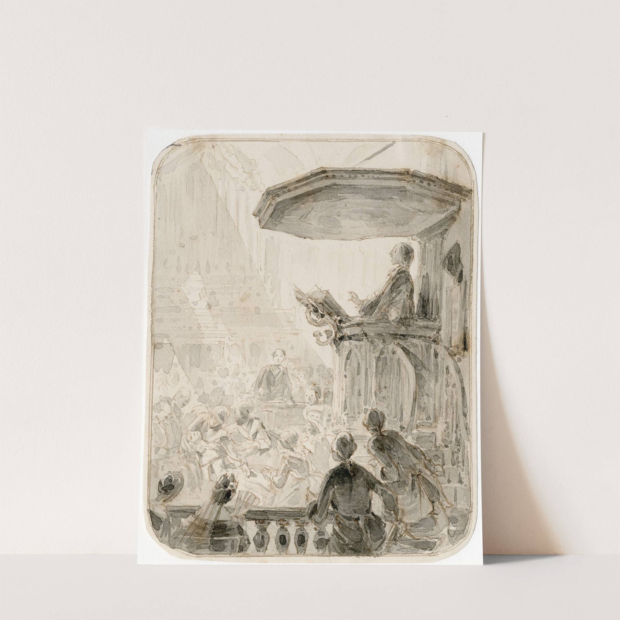 Vrouw valt flauw tijdens preek by Pieter van Loon  - Wall Art Print