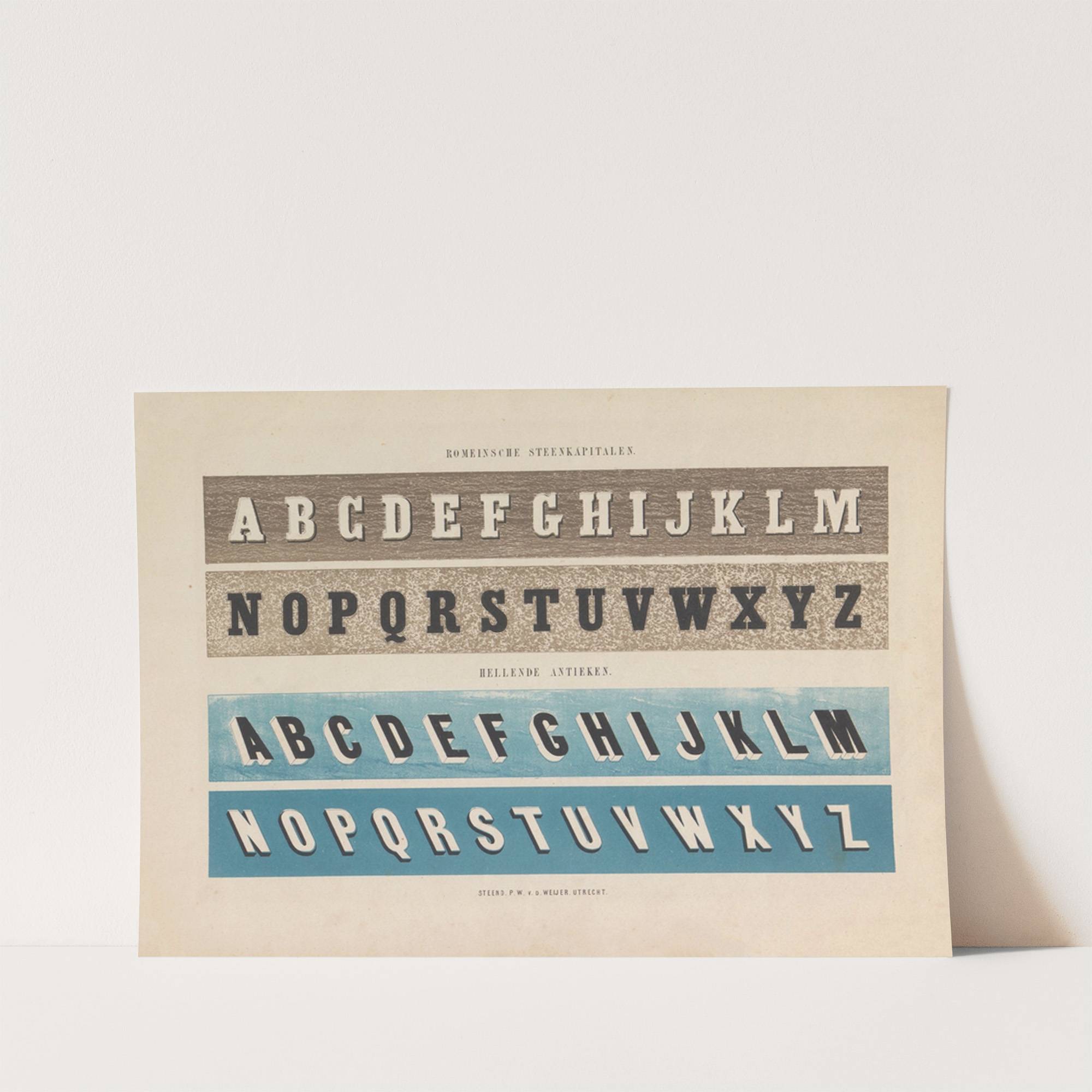 Twee alfabetten in Romein Romeinsche steenkapitalen Hellende antieken (1855) by Pieter Wilhelmus van de Weijer - Wall Art Print