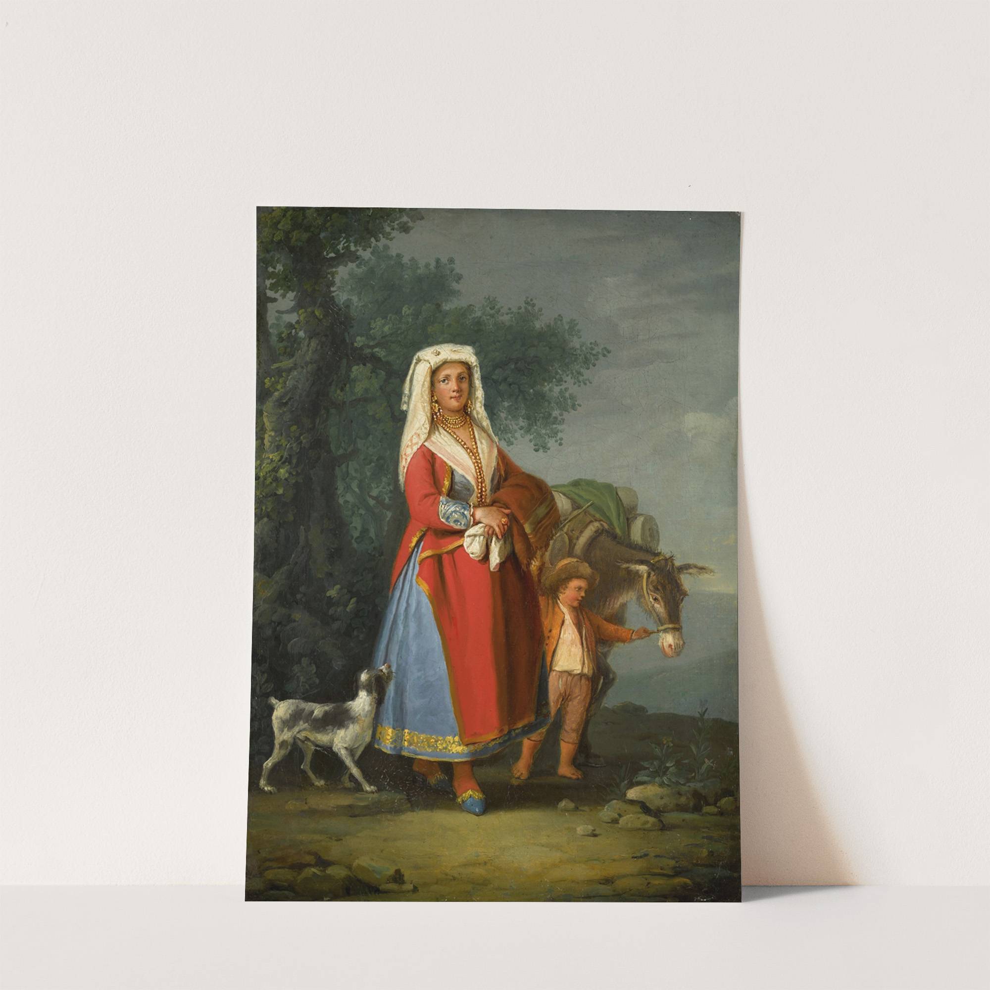 A Young Girl In Traditional Neapolitan Dress In A Landscape, Together With A Young Boy And A Donkey by Pietro Fabris - Wall Art Print