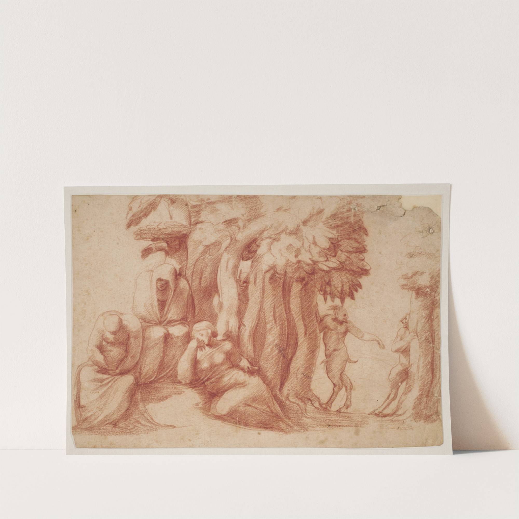 Tre nymfer i en lund udspioneres af tre satyrer by Pirro Ligorio - Wall Art Print