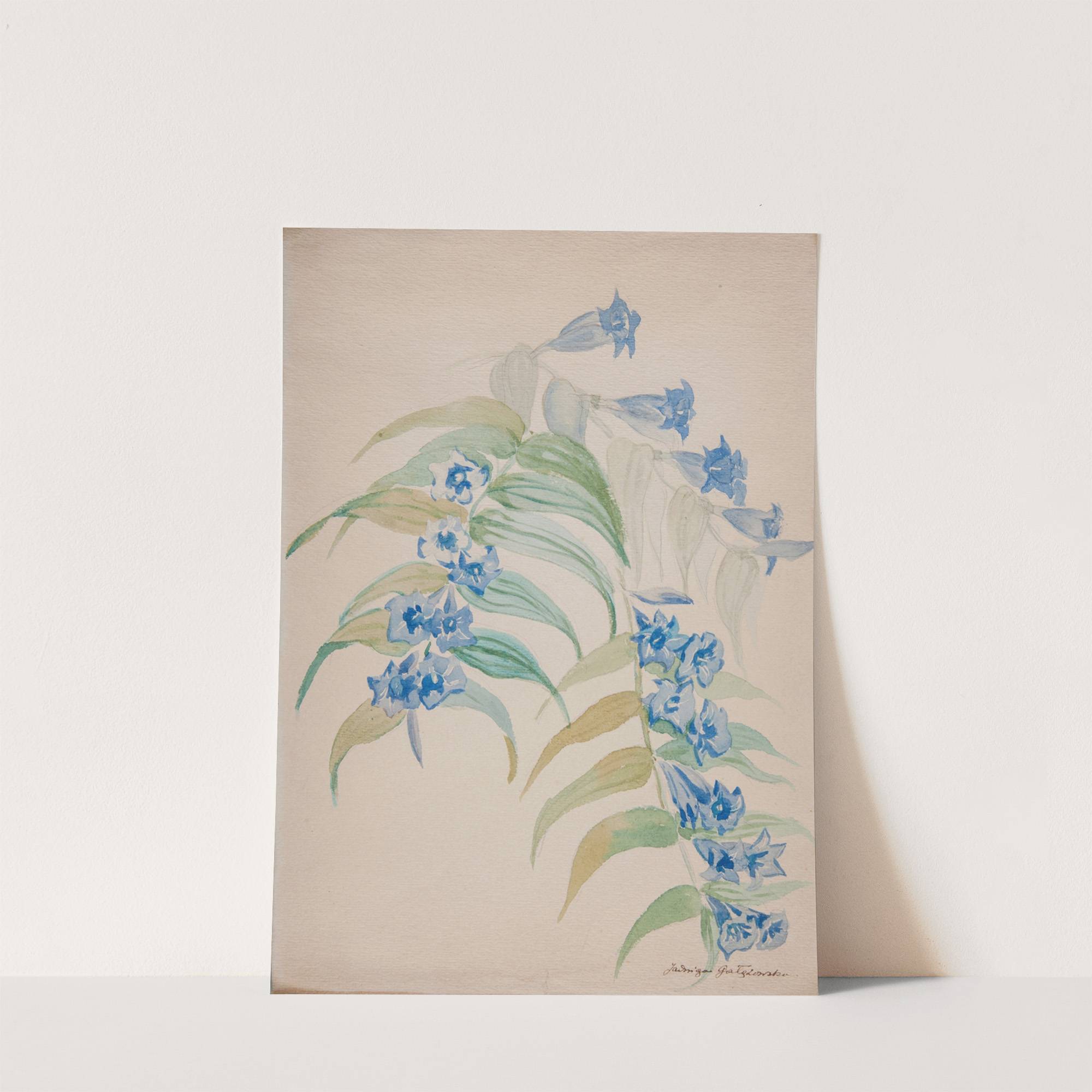 Twigs with blue flowers by Jadwiga Gałęzowska - Wall Art Print