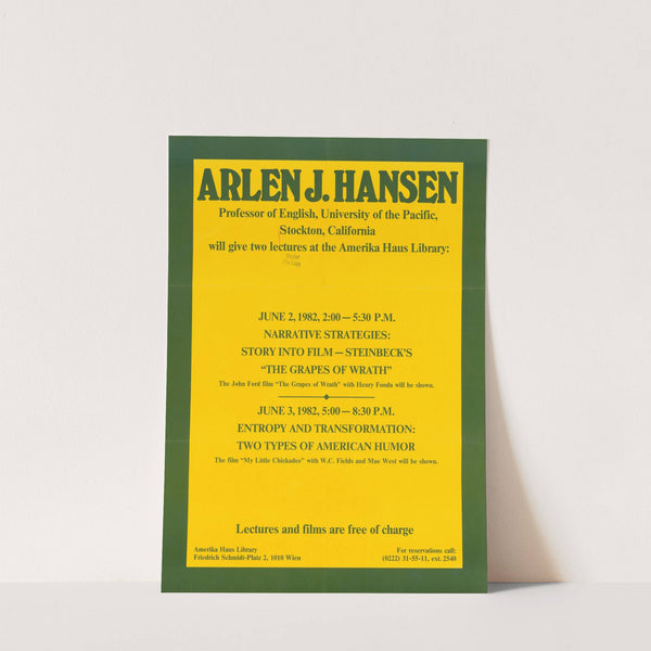 Arlen J. Hansen, Professor of English, University of the Pacific, Stockton, California, will give two lectures at the Amerika Haus Library by U.S. Information Agency - Wall Art Print