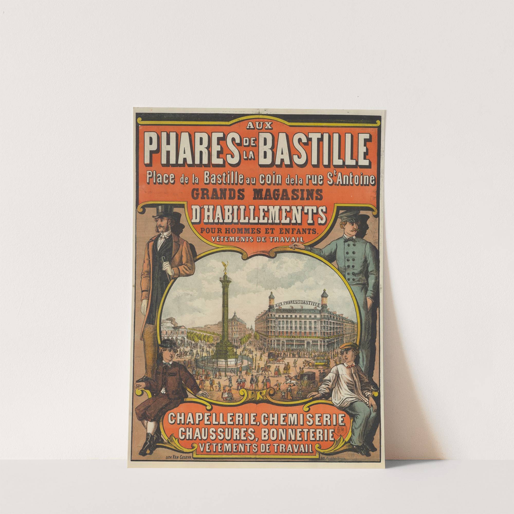 Aux Phares de la Bastille, place de la Bastille au coin de la rue St. Antoine (1869) by Lith. Van Geleyn - Wall Art Print