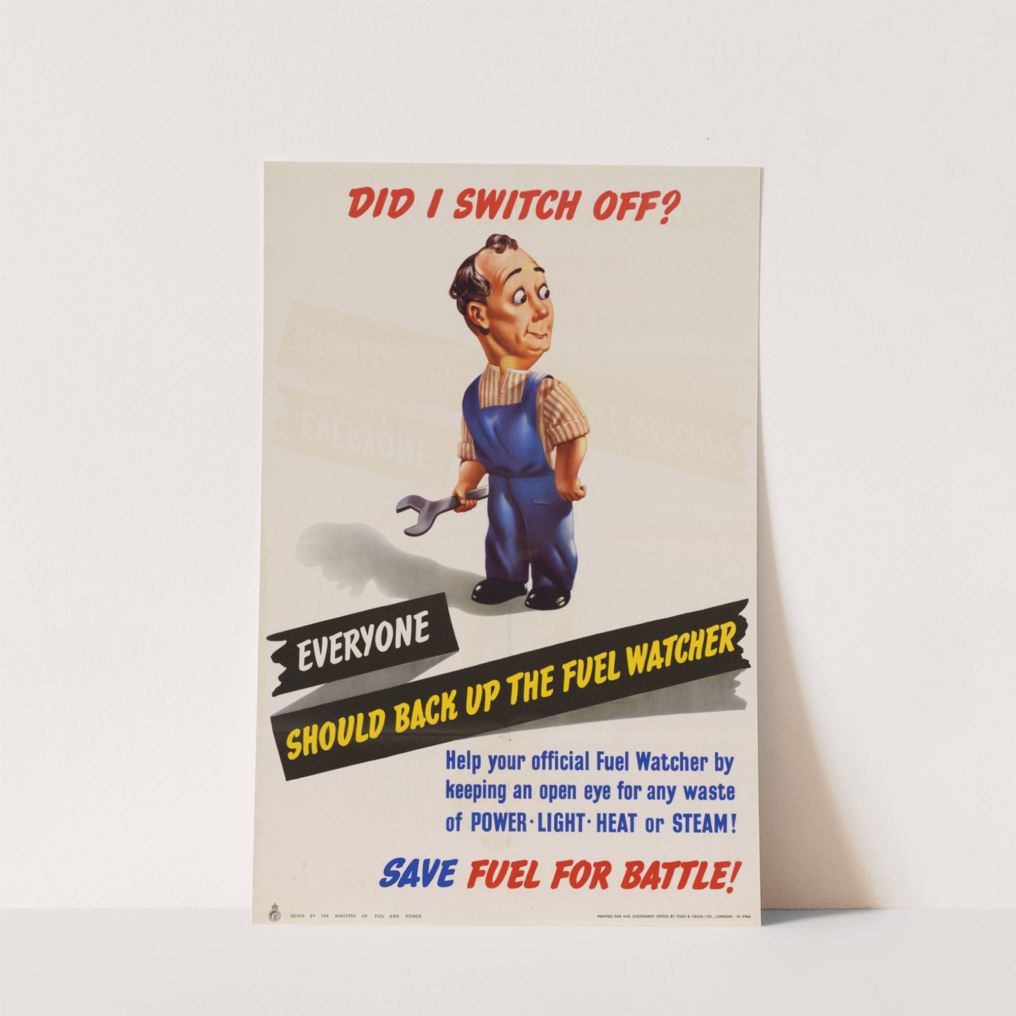Did I Switch Off, Everyone Should Back Up the Fuel Watcher by Abram Games - Wall Art Print