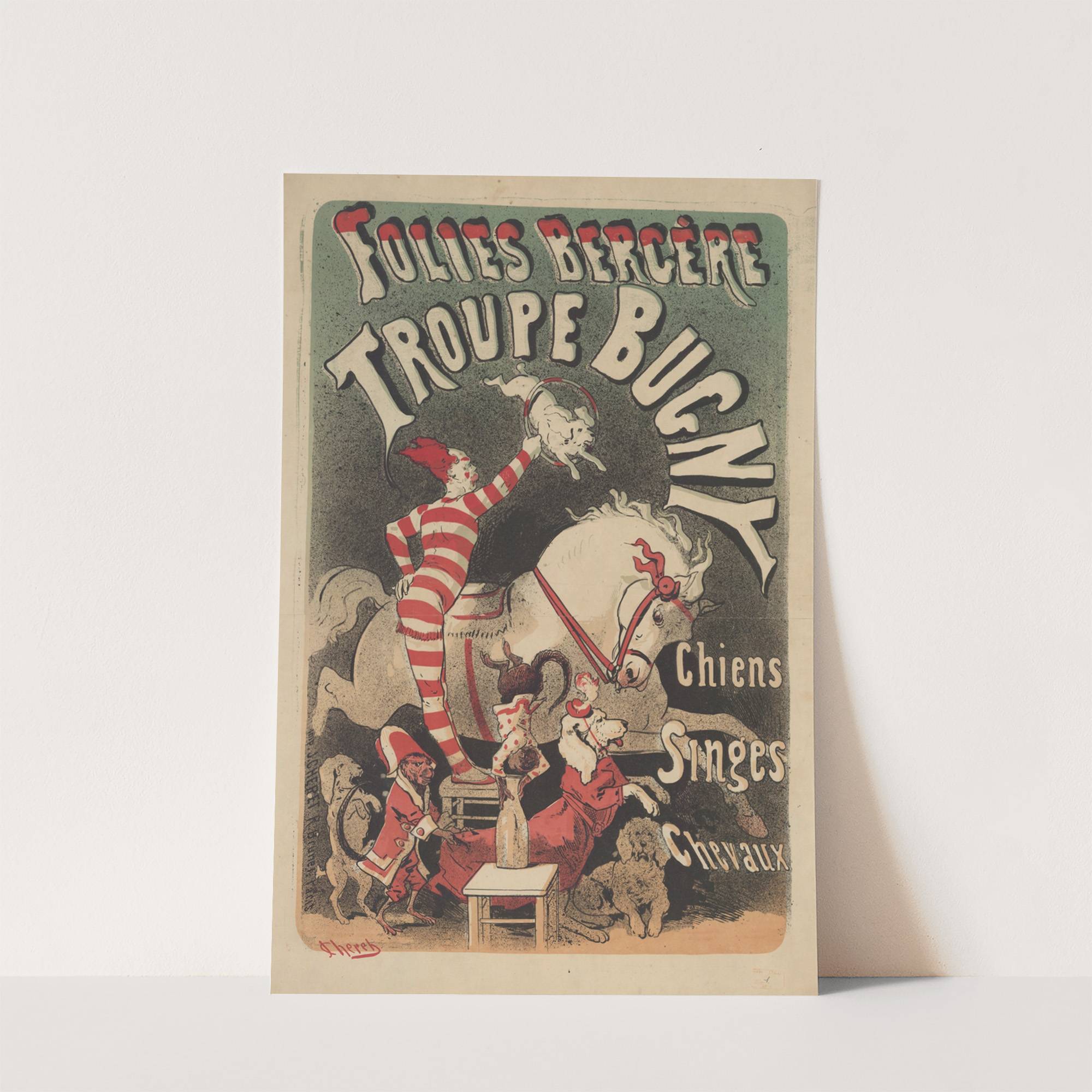 Folies-Bergère. Troupe Bugny, chiens, singes, chevaux (1874) by Jules Chéret - Wall Art Print