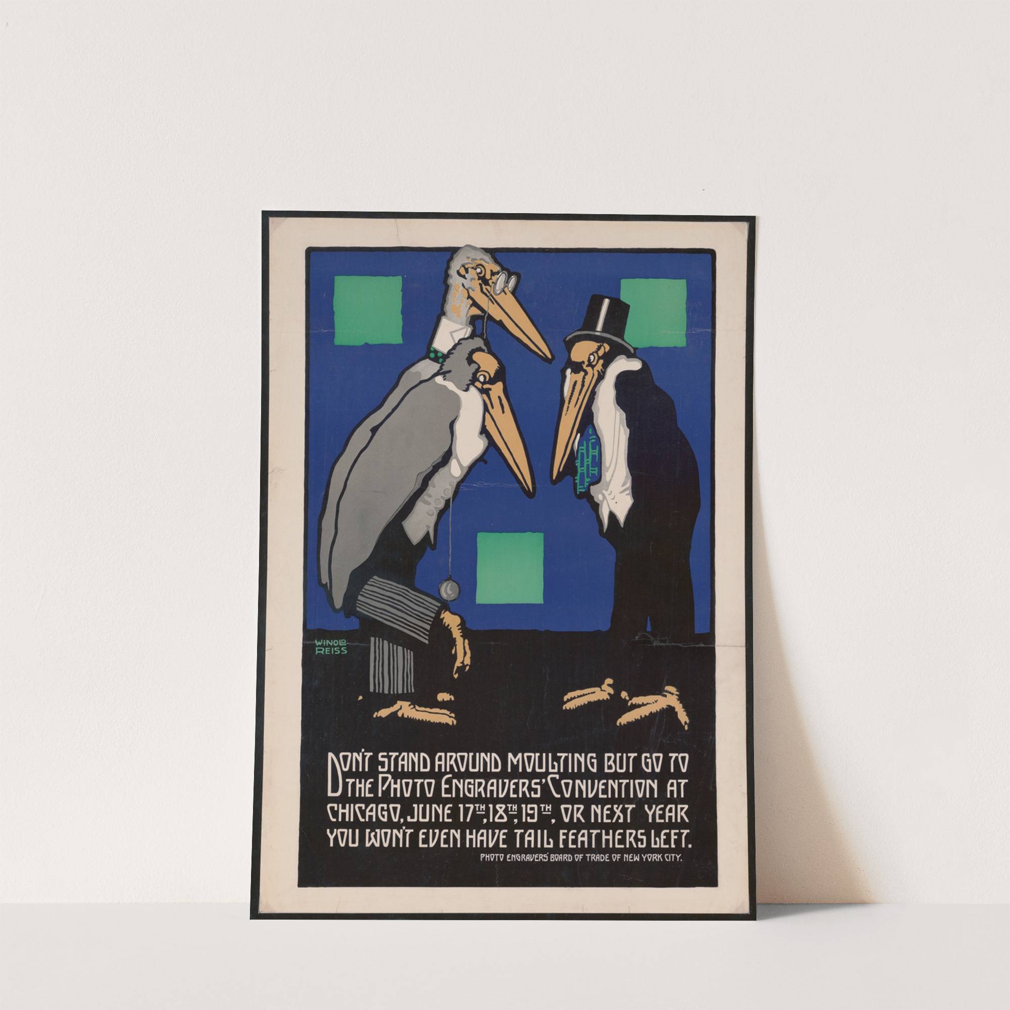 Graphic design for Photo Engravers Convention, Chicago.] [Poster featuring cartoon-like storks by Winold Reiss - Wall Art Print