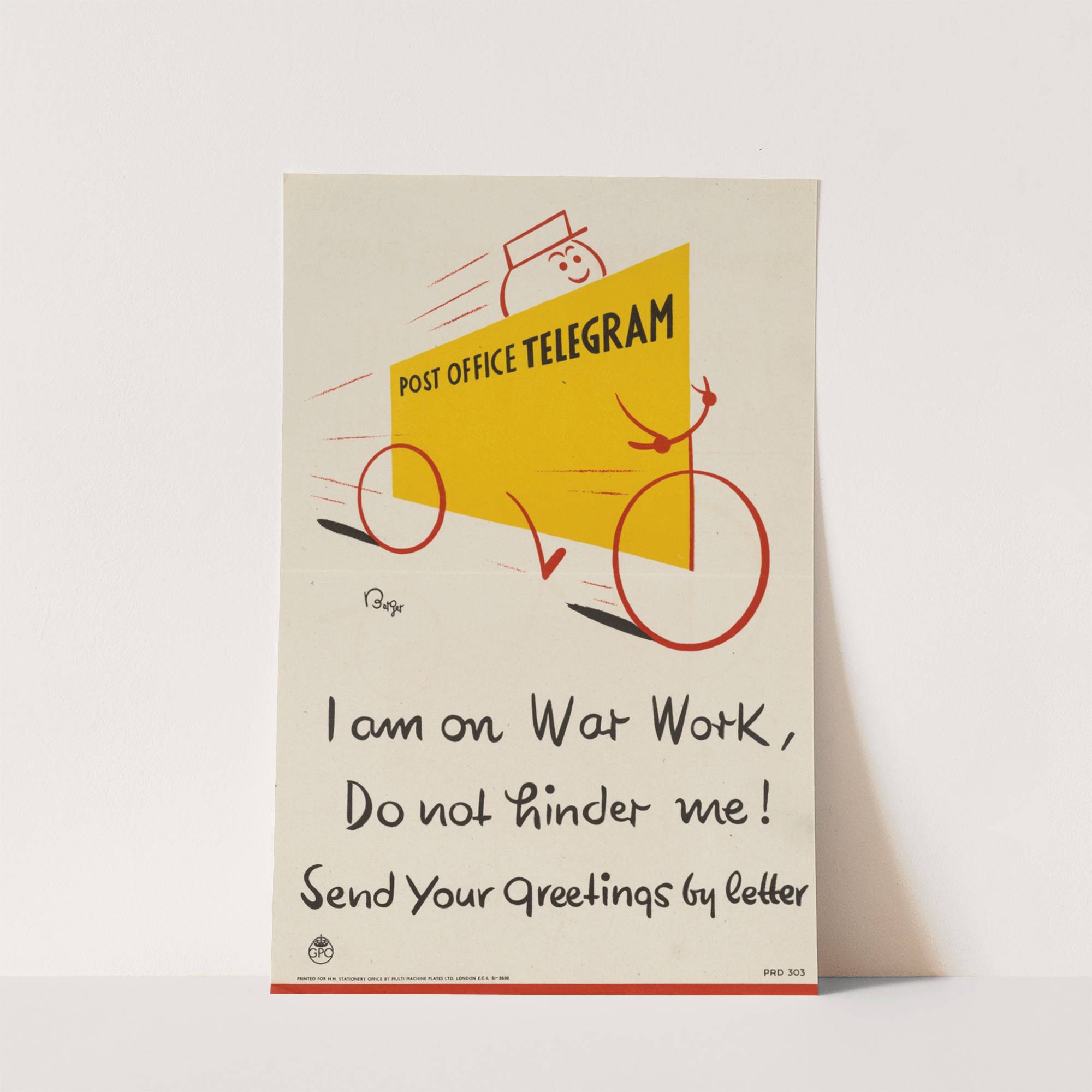 I am on War Work, Do Not Hinder Me! Send Your Greetings by Letter by Abram Games - Wall Art Print