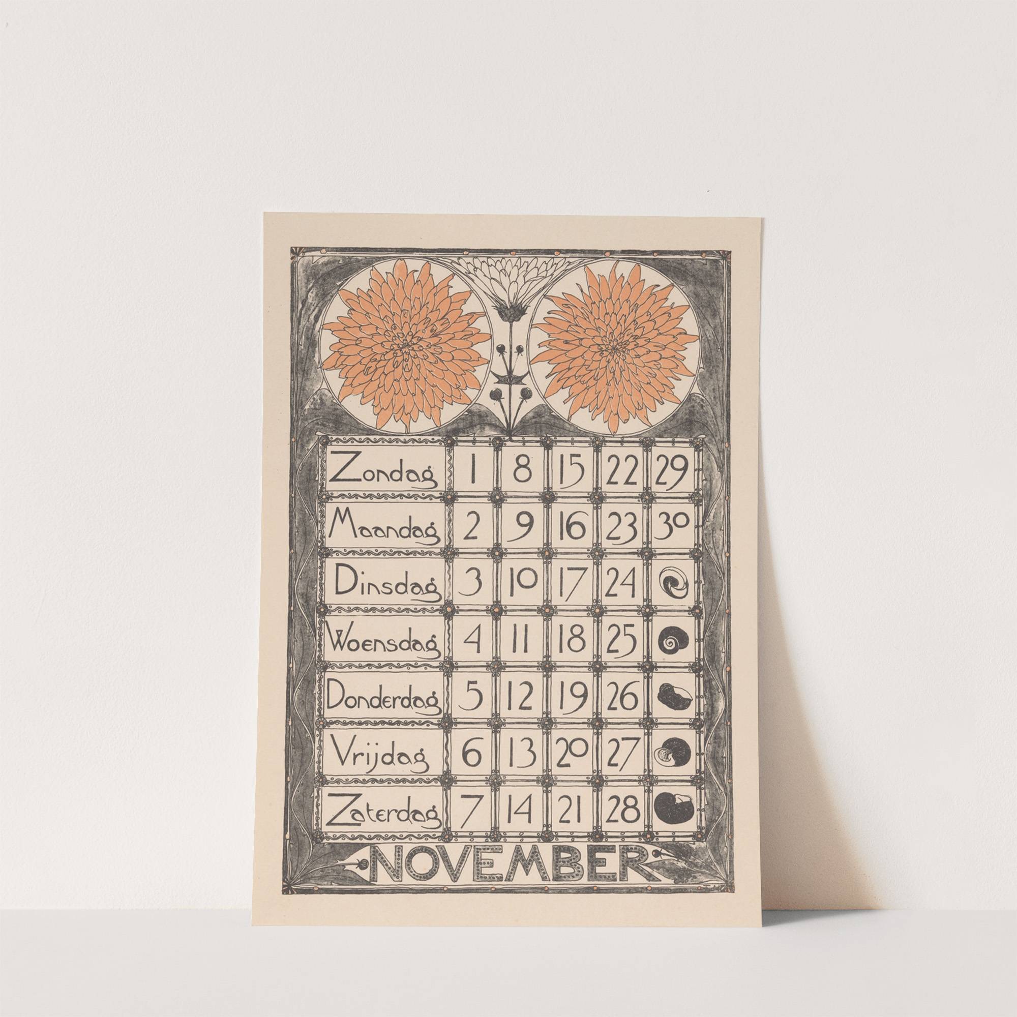 Kalenderblad voor november 1896 by Theo Nieuwenhuis - Wall Art Print