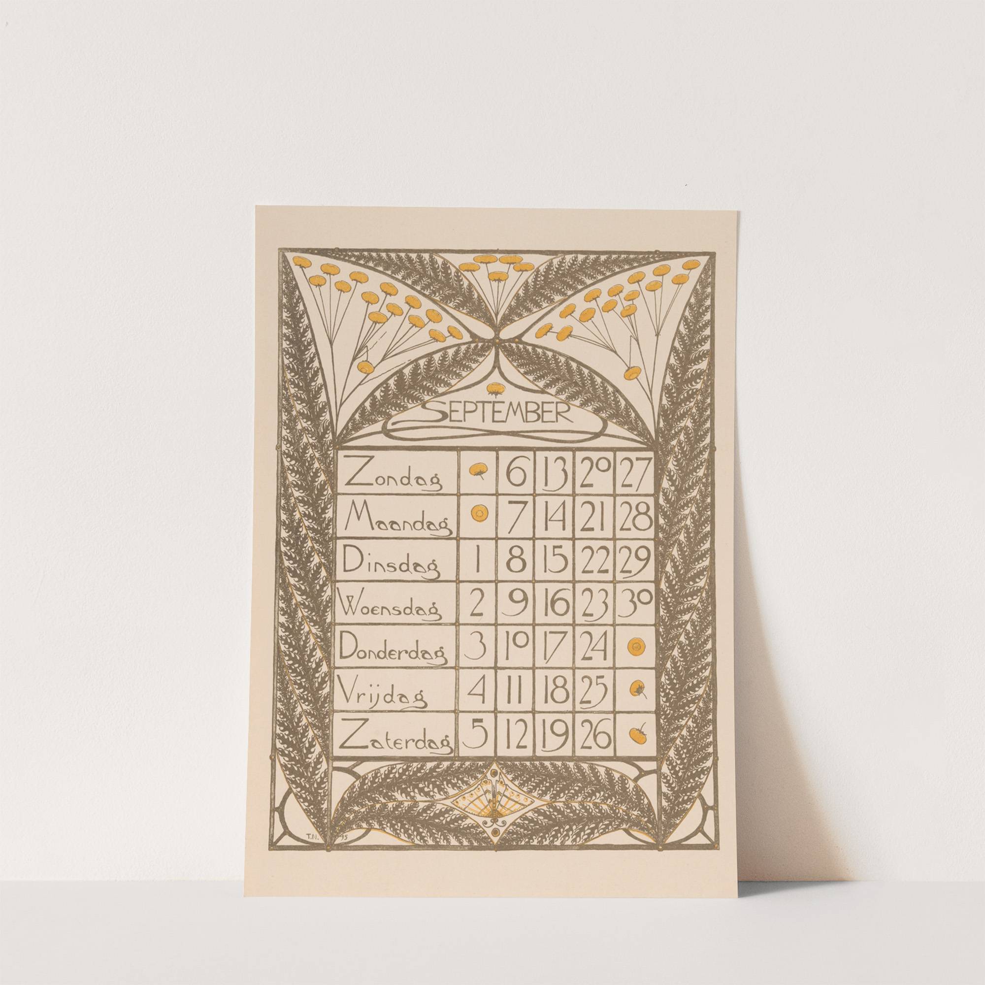 Kalenderblad voor september 1896 by Theo Nieuwenhuis - Wall Art Print