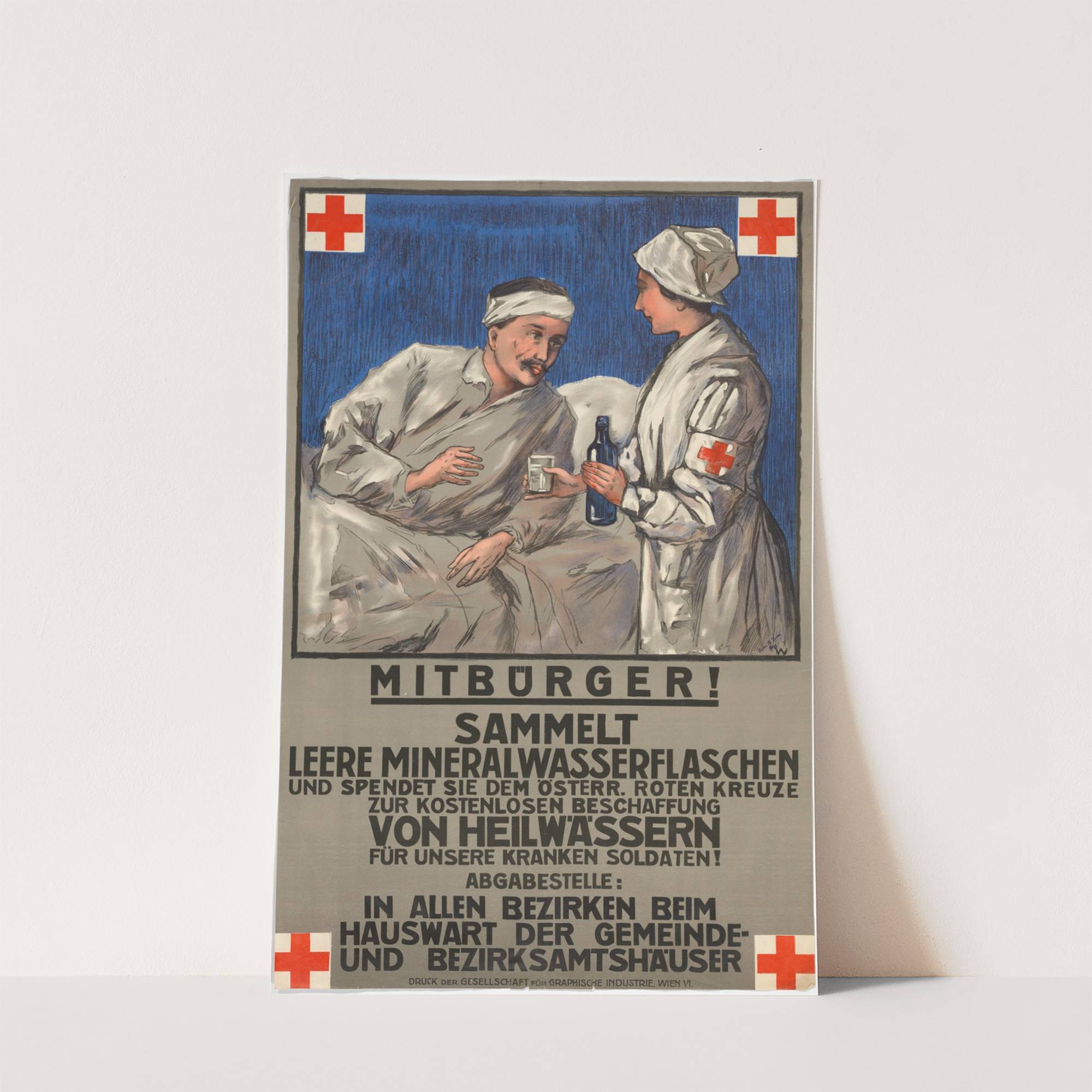 Mitbürger sammelt leere Mineralwasserflaschen (1917) by Gesellschaft für Graphische Industrie - Wall Art Print