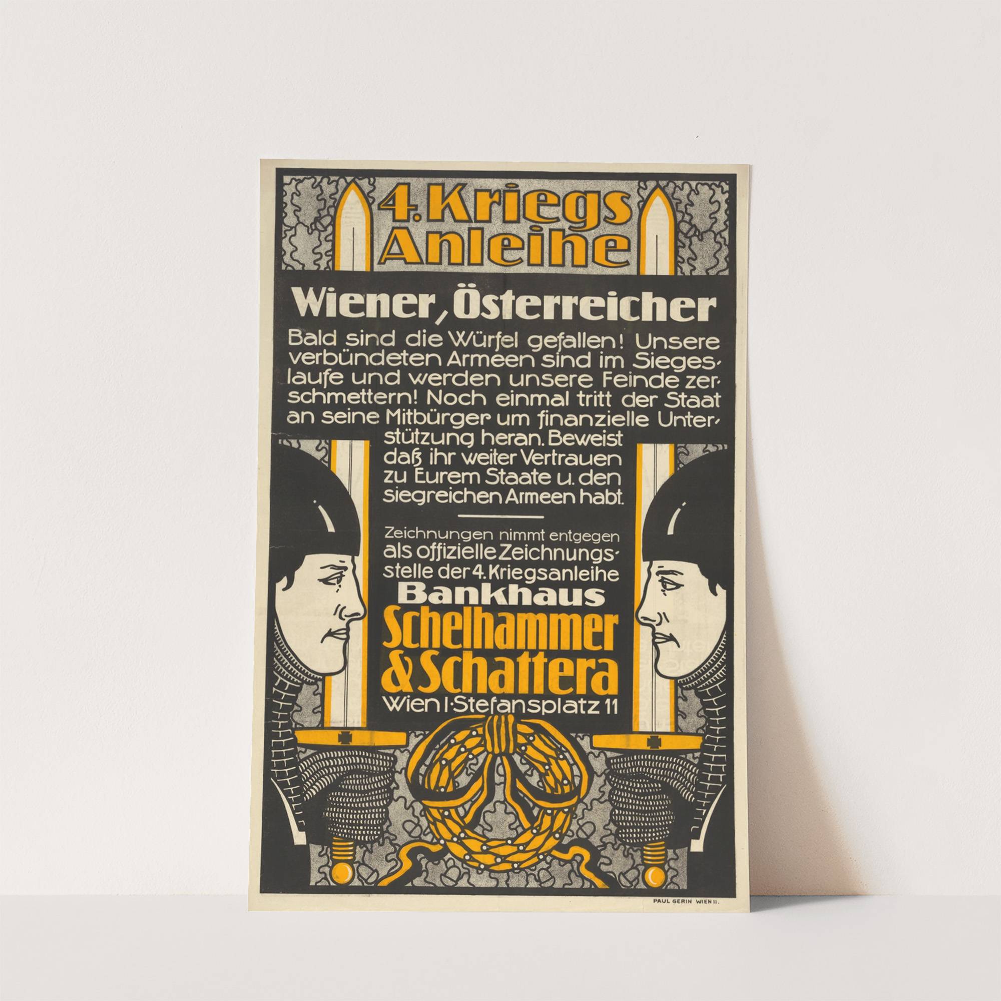 Plakat des Bankhauses Schelhammer & Schattera für die 4. Kriegsanleihe (1916) by Paul Gerin - Wall Art Print