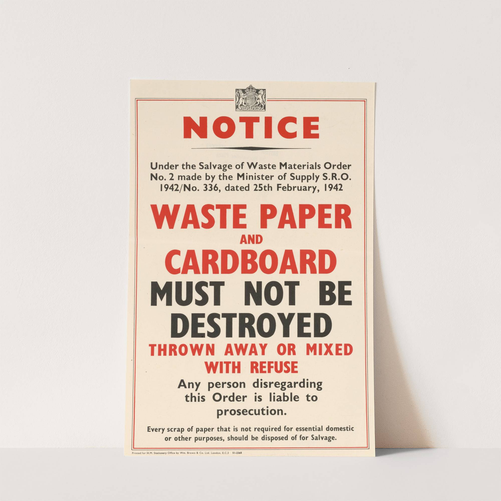 Waste Paper and Cardboard Must Not Be Destroyed Thrown Away or Mixed With Refuse by Pat Keely - Wall Art Print