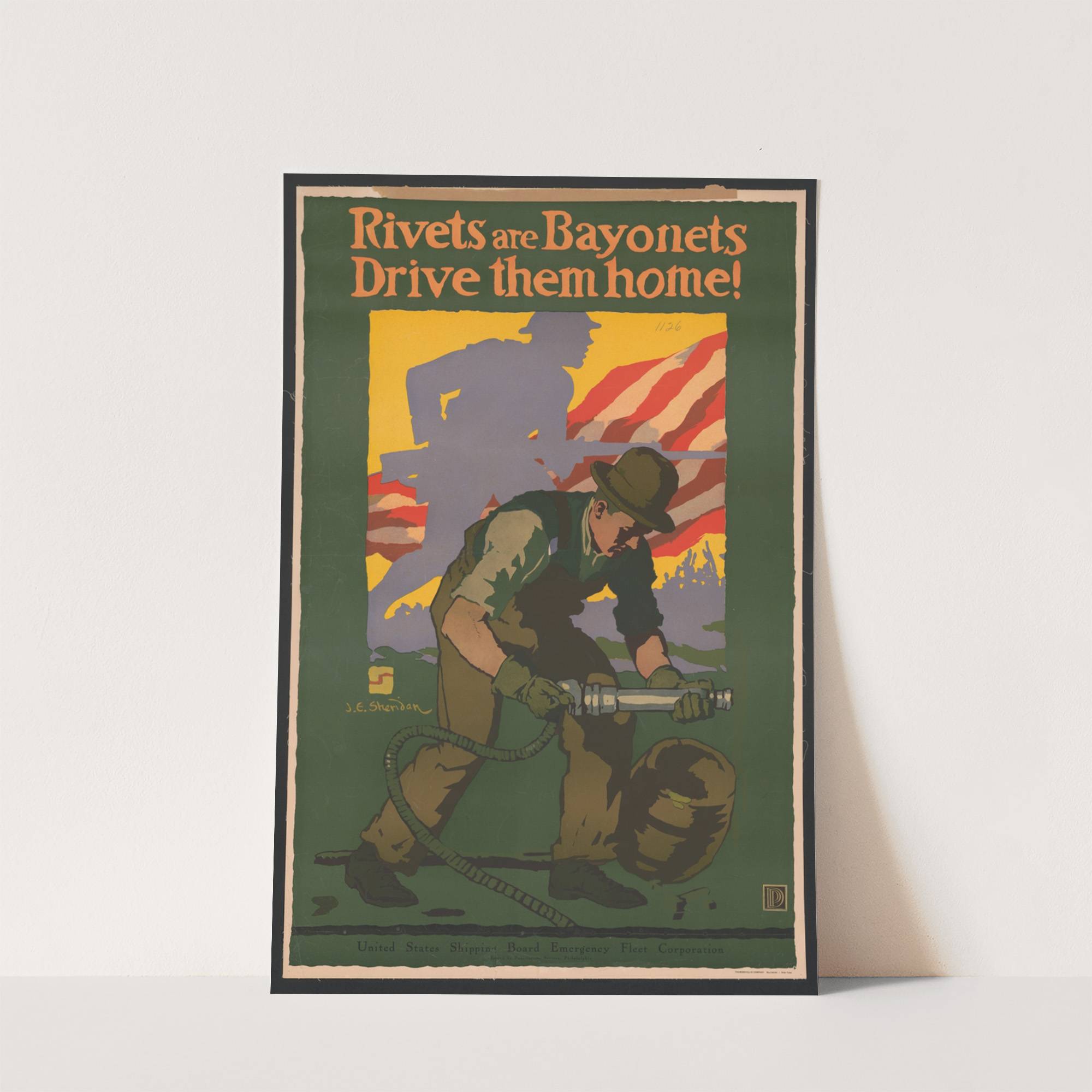 Rivets are bayonets – Drive them home! by John Sheridan - Wall Art Print
