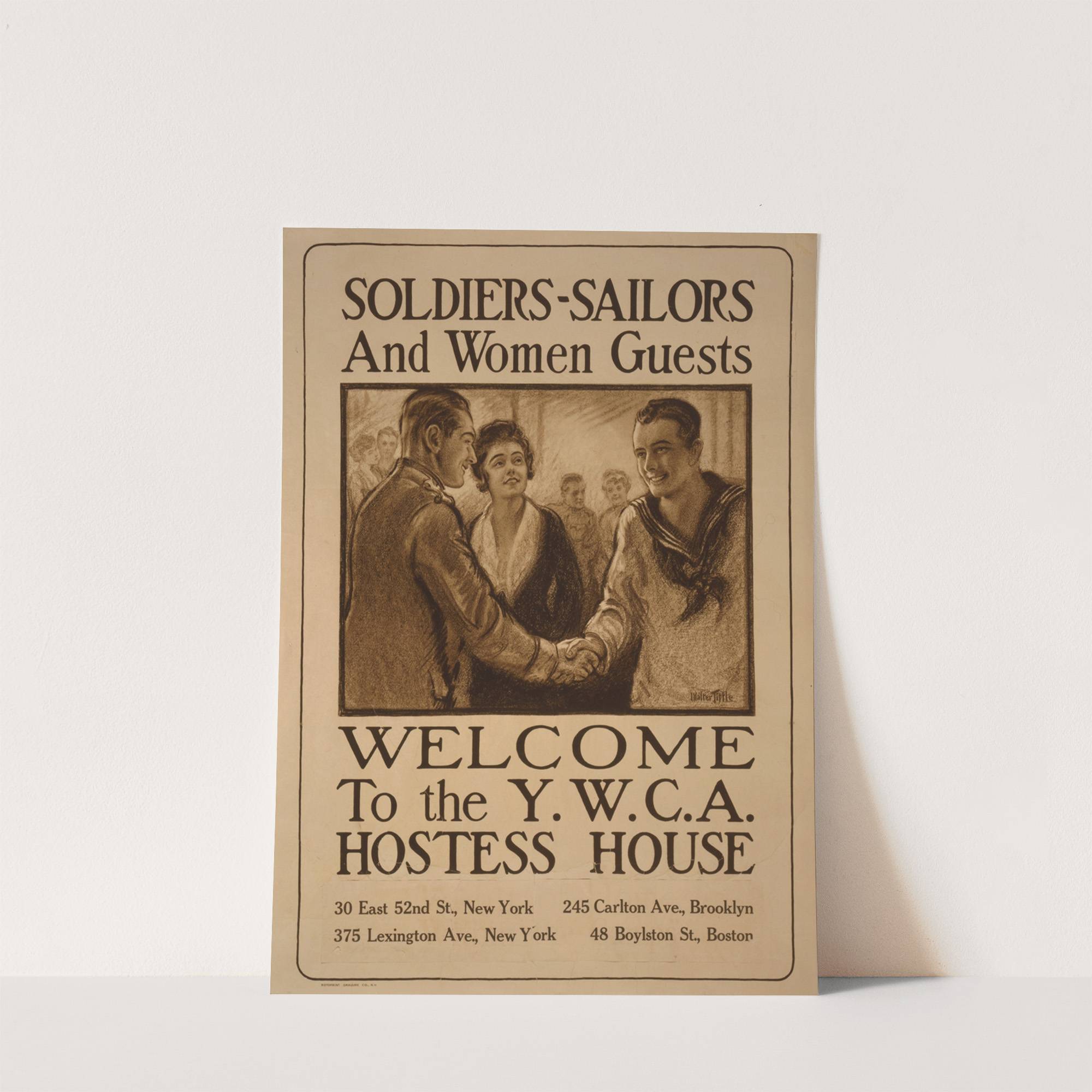 Soldiers-sailors and women guests – Welcome to the Y.W.C.A. hostess house by Walter Tittle - Wall Art Print