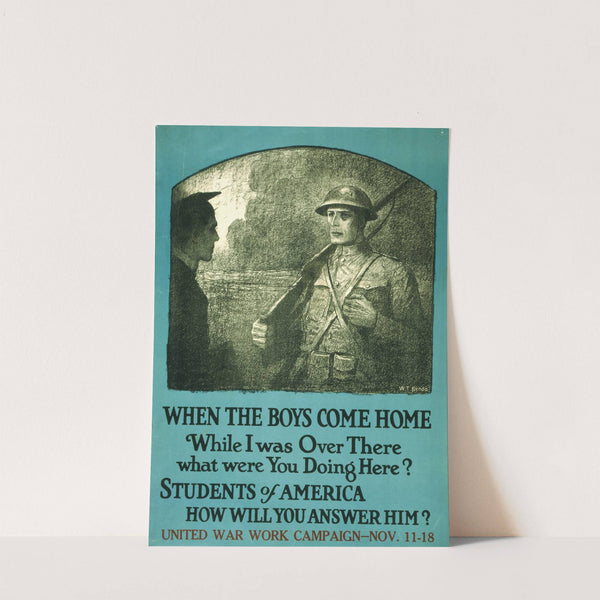 When the boys come home While I was over there what were you doing here, Students of America, how will you answer him by Wladyslaw Theodore Benda - Wall Art Print