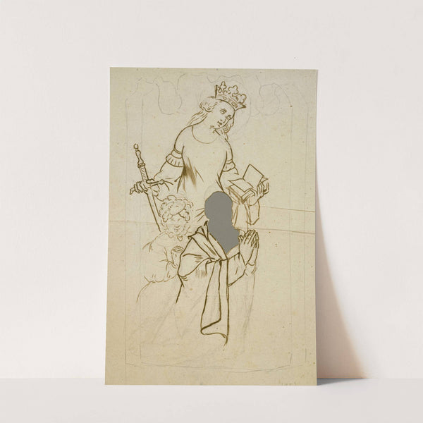 Sainte Catherine d’Alexandrie protégeant un couple en prière by Prosper Lafaye - Wall Art Print