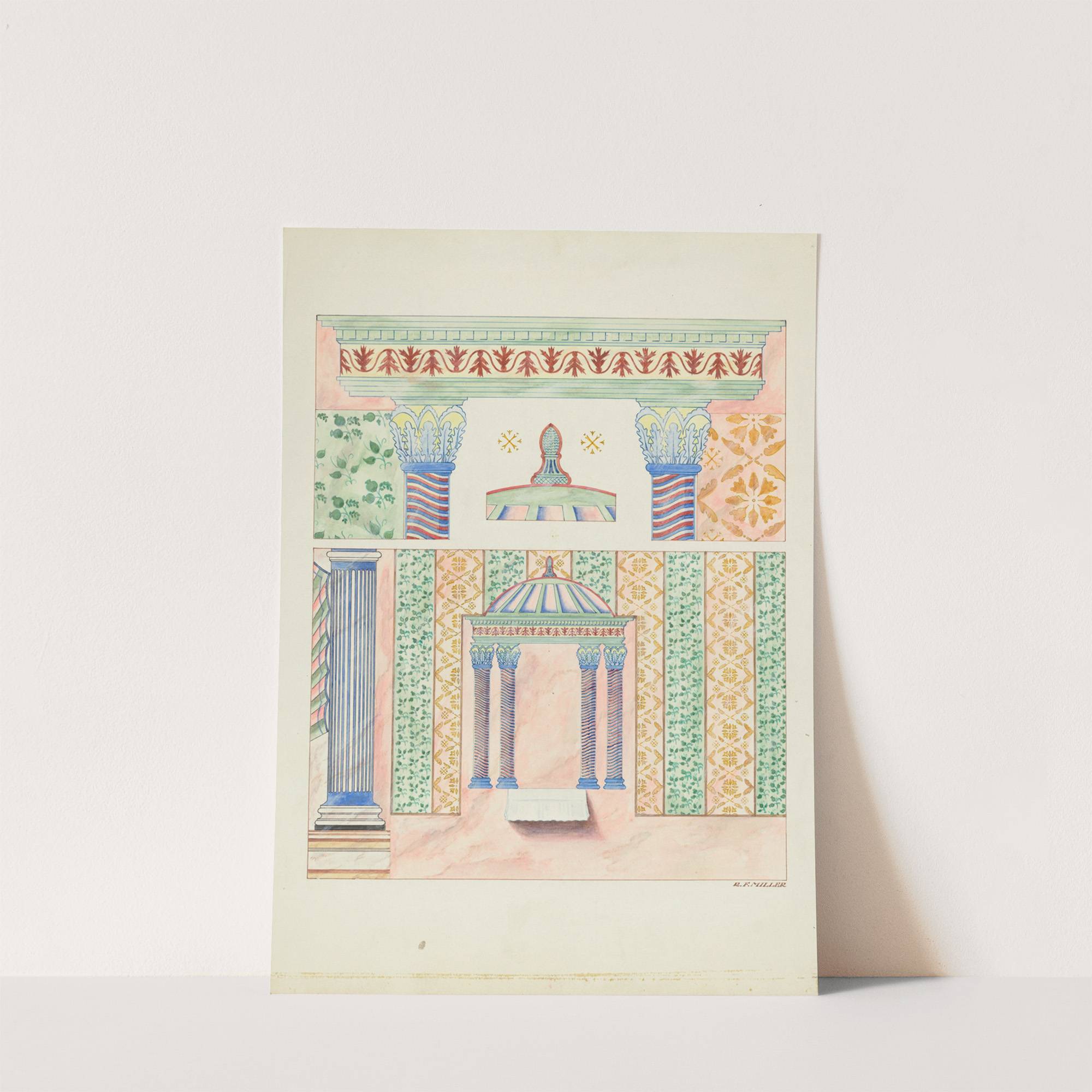 Details of Wall Paintings, Side Wall of Sanctuary by Randolph F. Miller - Wall Art Print