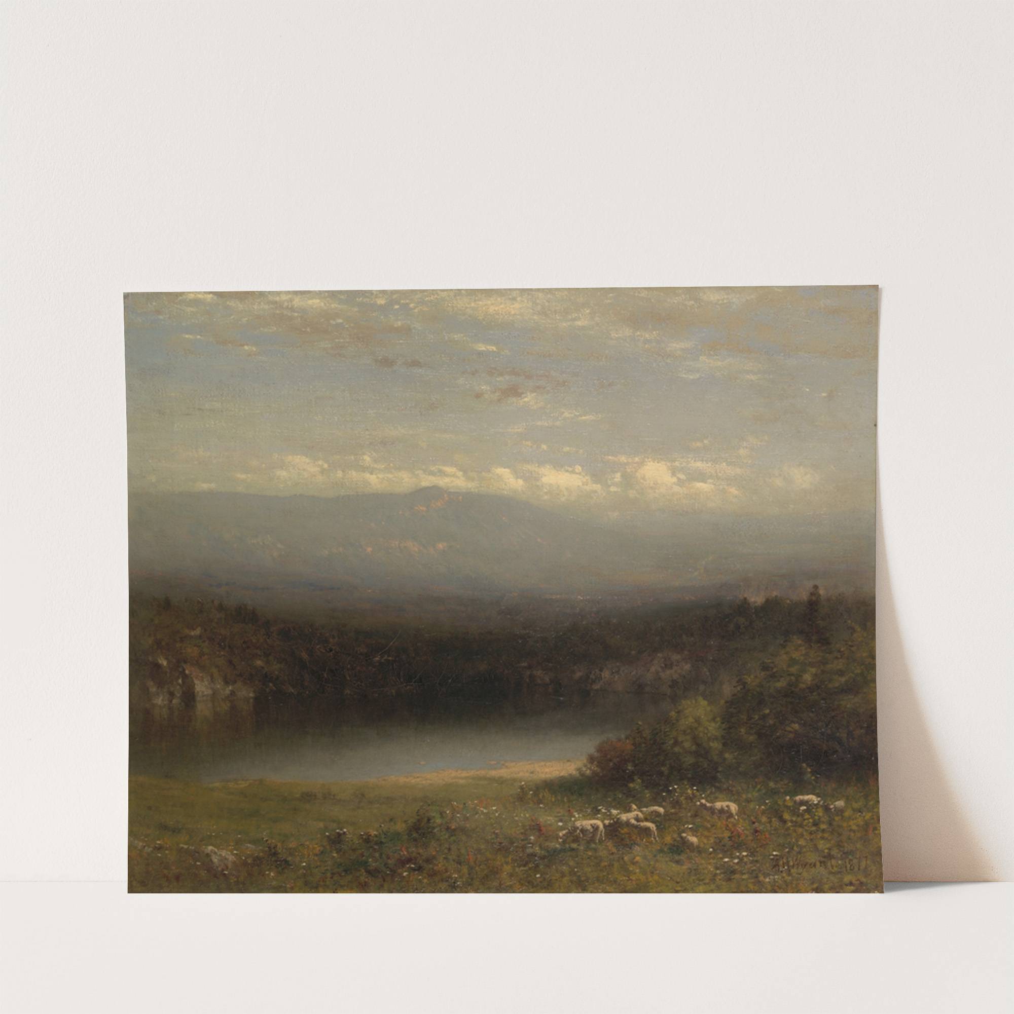 This stunning landscape painting, titled "Mountain Lake" by Alexander Helwyck Wyant, captures the serene beauty of a natural scene with remarkable detail and realism. The painting features a tranquil lake at its center, reflecting the soft light of an overcast...