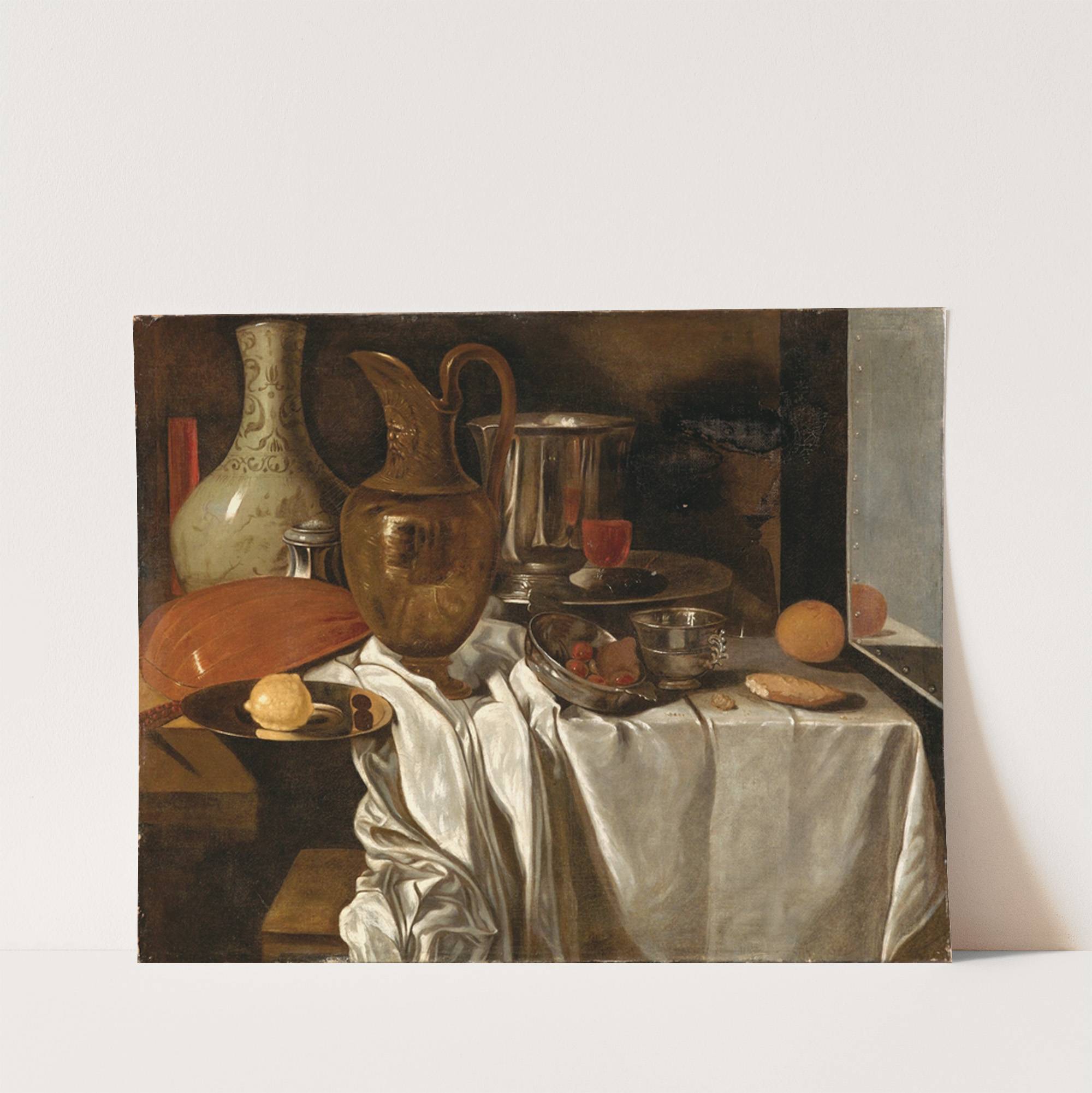 This exquisite art print features "Still Life with a Jug, a Tray with a Lemon, a Lute, a Ceramic Vessel and Other Objects" by Andrè Bouys. This classical still life painting exudes timeless beauty through its richly detailed composition. A...