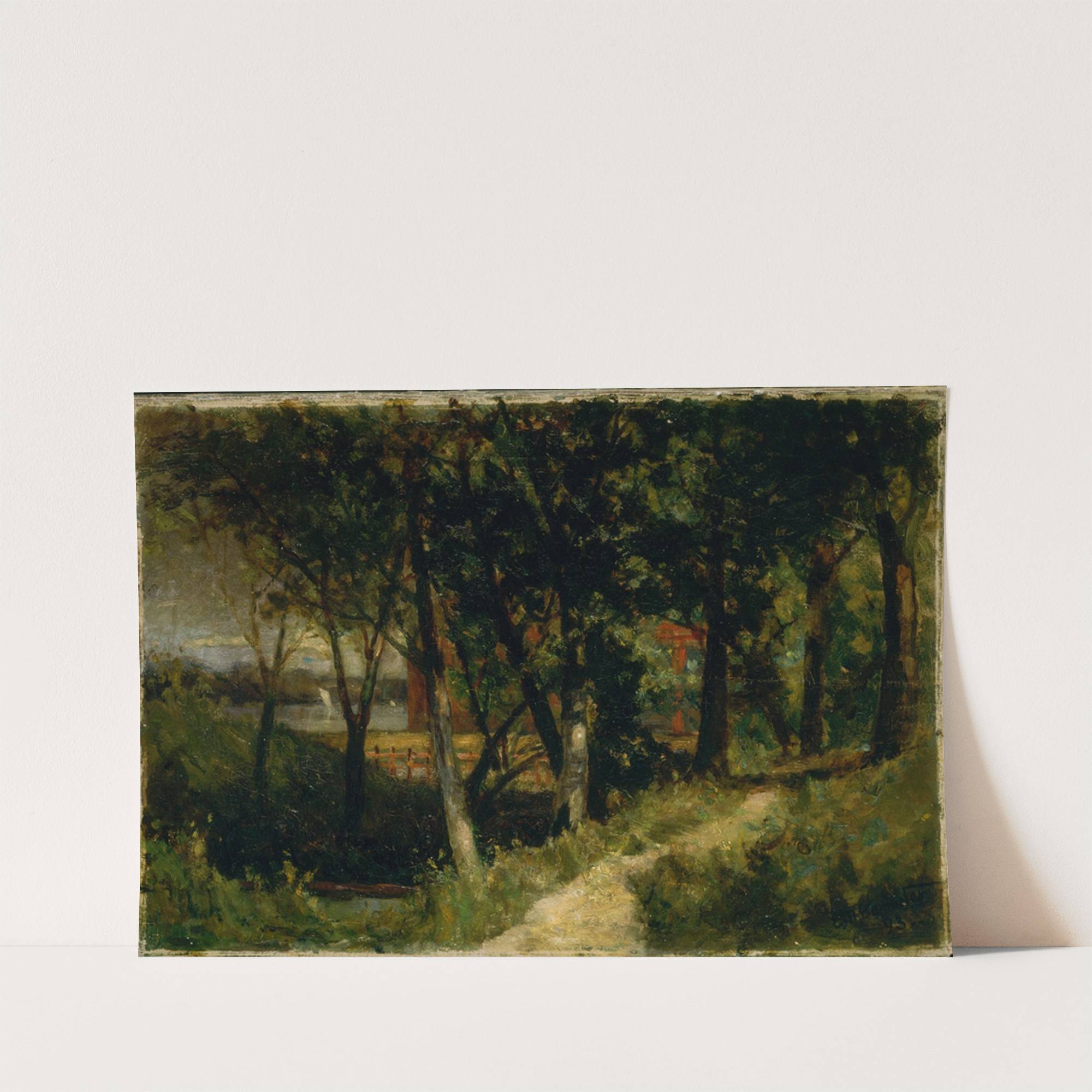 Untitled (landscape, forest scene with red fence and building) by Edward Mitchell Bannister - Wall Art Print