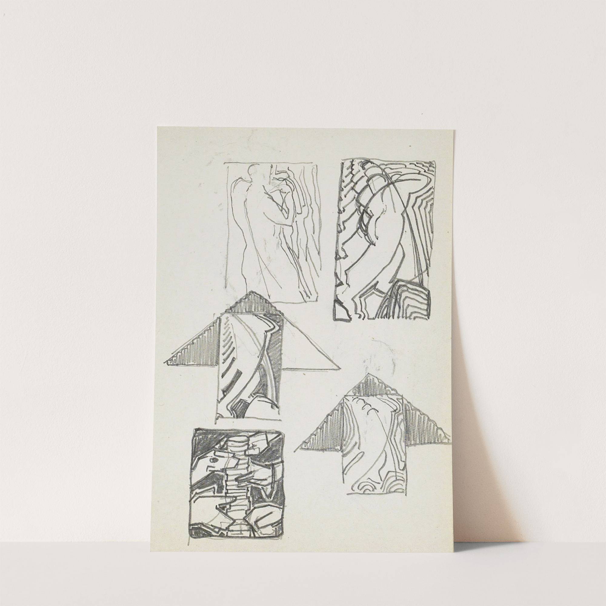 Studieblad, onder andere met figuren en dierenkoppen by Reijer Stolk - Wall Art Print