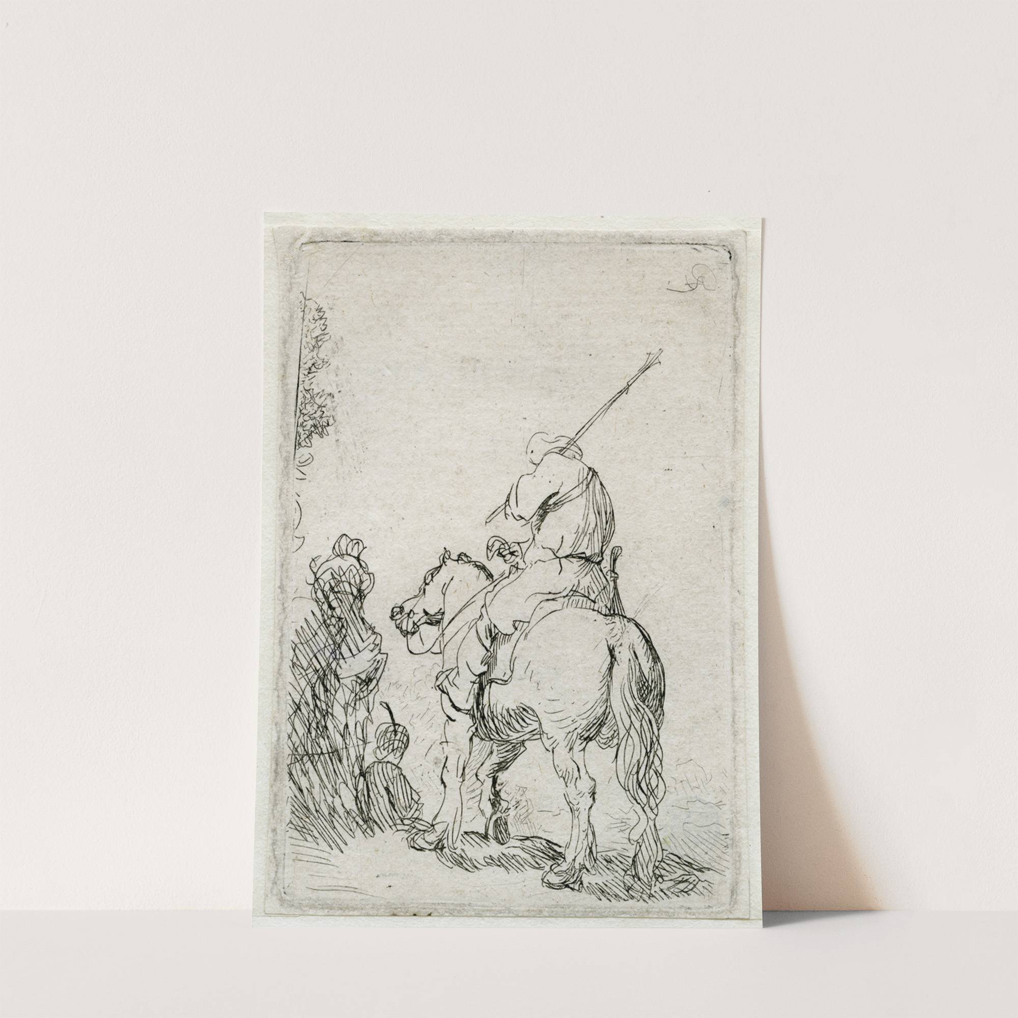 A Turbanded Soldier on Horseback by Rembrandt van Rijn - Wall Art Print