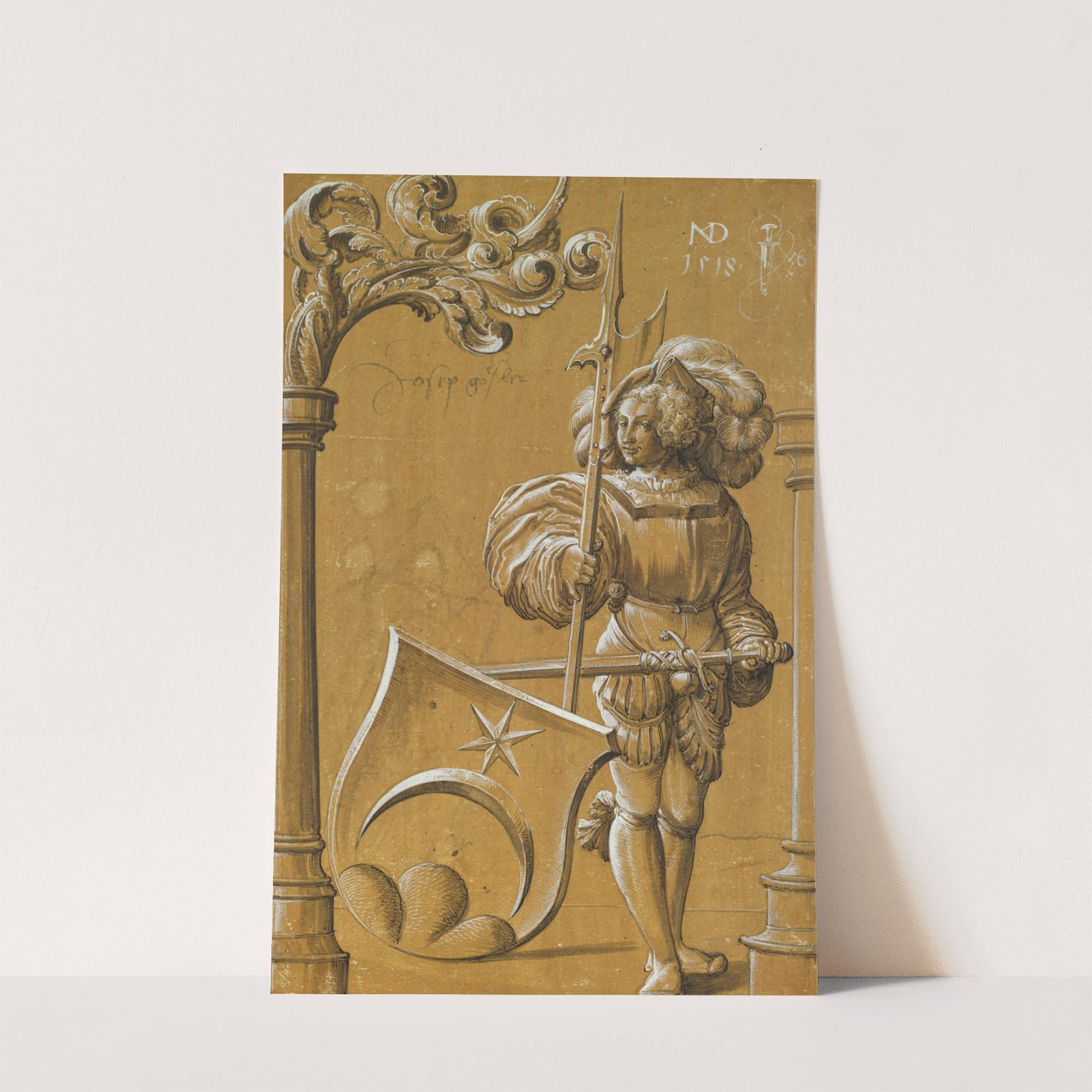 Scheibenriss mit Schildhalter und dem Wappen Jenner by Hans Rudolf Manuel - Wall Art Print