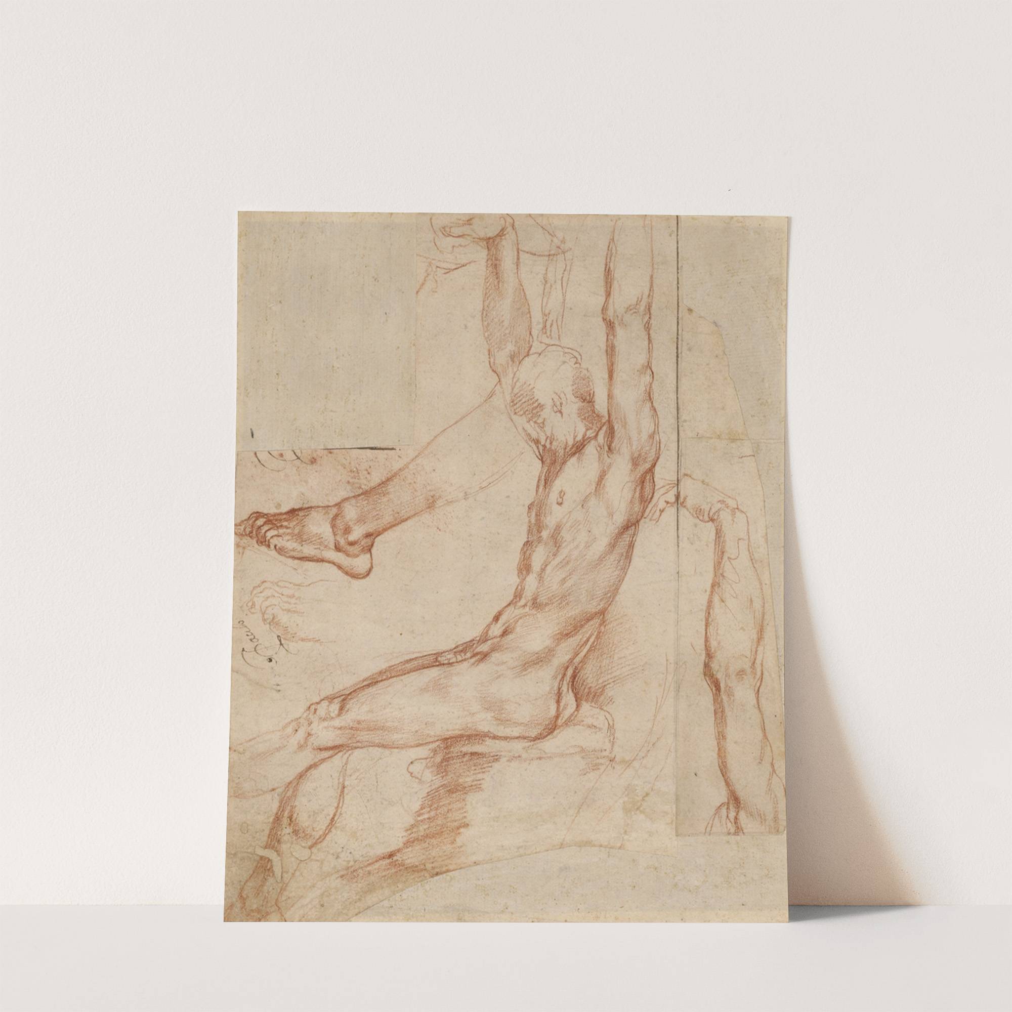 Study of a Man with Various Sketches by Polidoro da Caravaggio - Wall Art Print