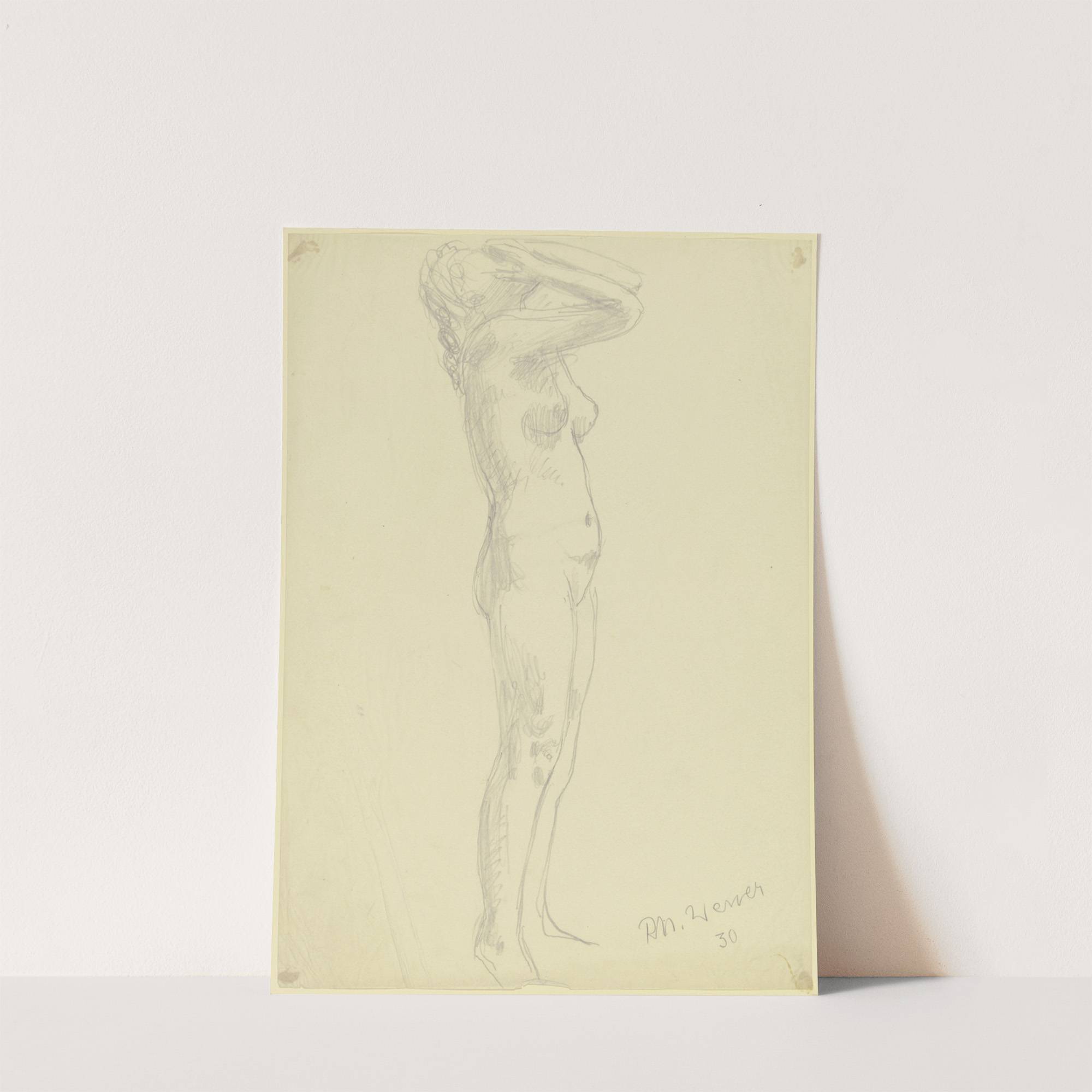 Weiblicher Akt, stehend, die Händ vor das Gesicht geschlagen by Richard Martin Werner - Wall Art Print