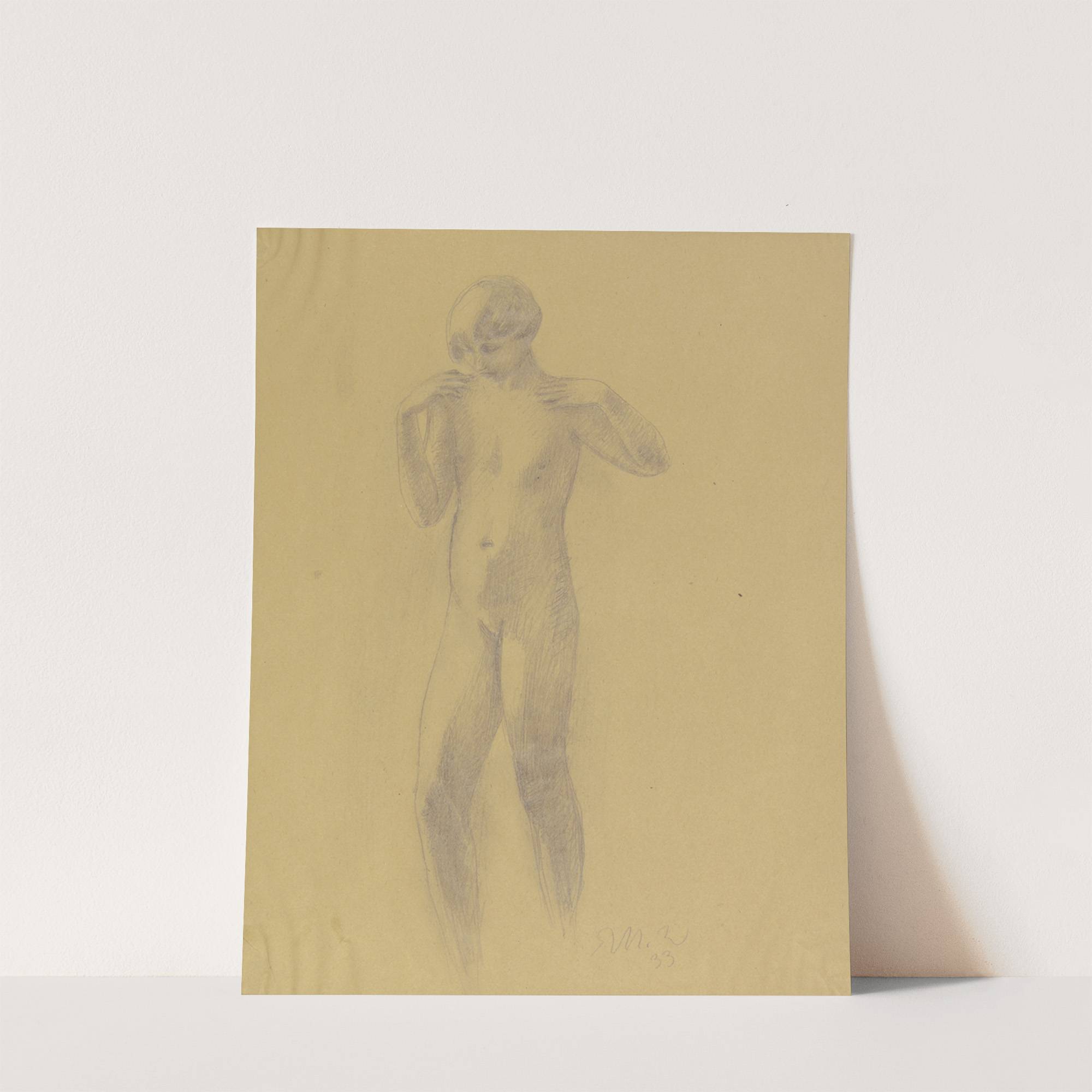 Weiblicher Akt, stehend, die Hände an die Schultern geführt by Richard Martin Werner - Wall Art Print