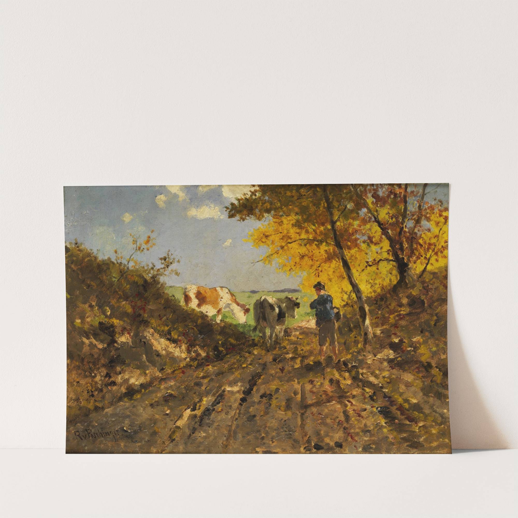 Herbstlandschaft mit Kühen by Richard Von Poschinger - Wall Art Print
