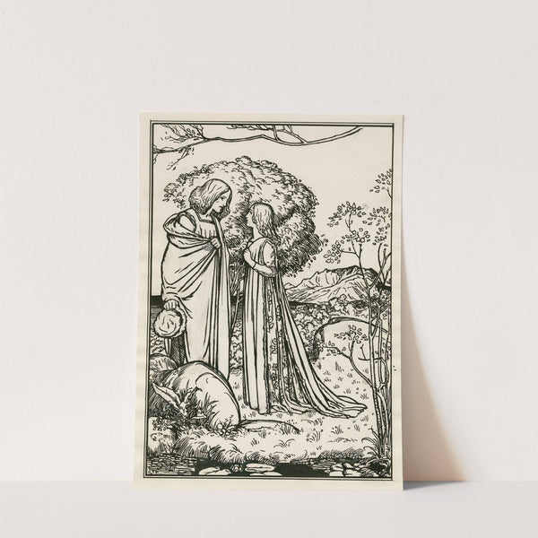 Full-page illustration of Ferdinand and Miranda from act 1, scene 2 of the Tempest (1900) by Robert Anning Bell - Wall Art Print