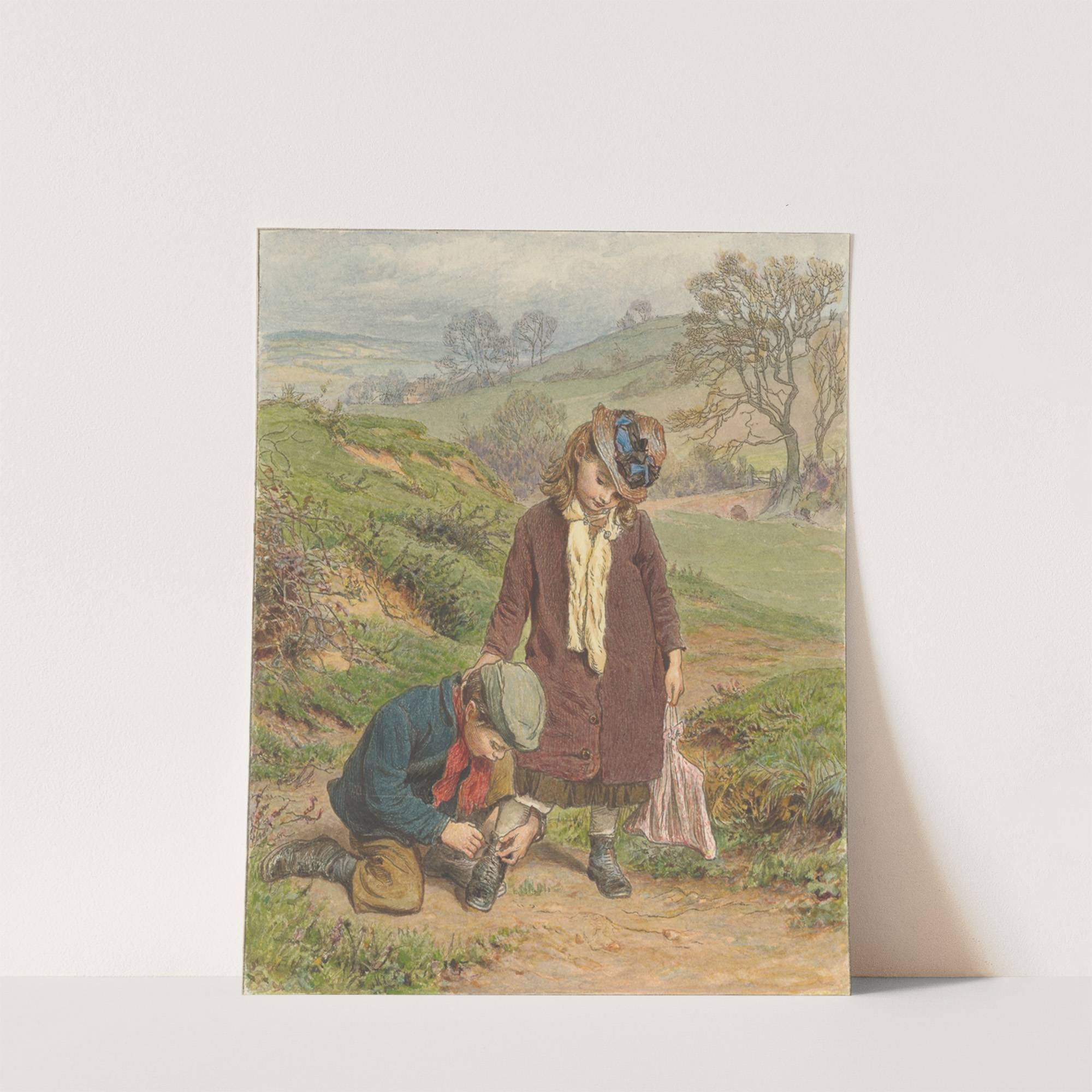 Boy Tying a Girl’s Shoe by Robert Barnes - Wall Art Print