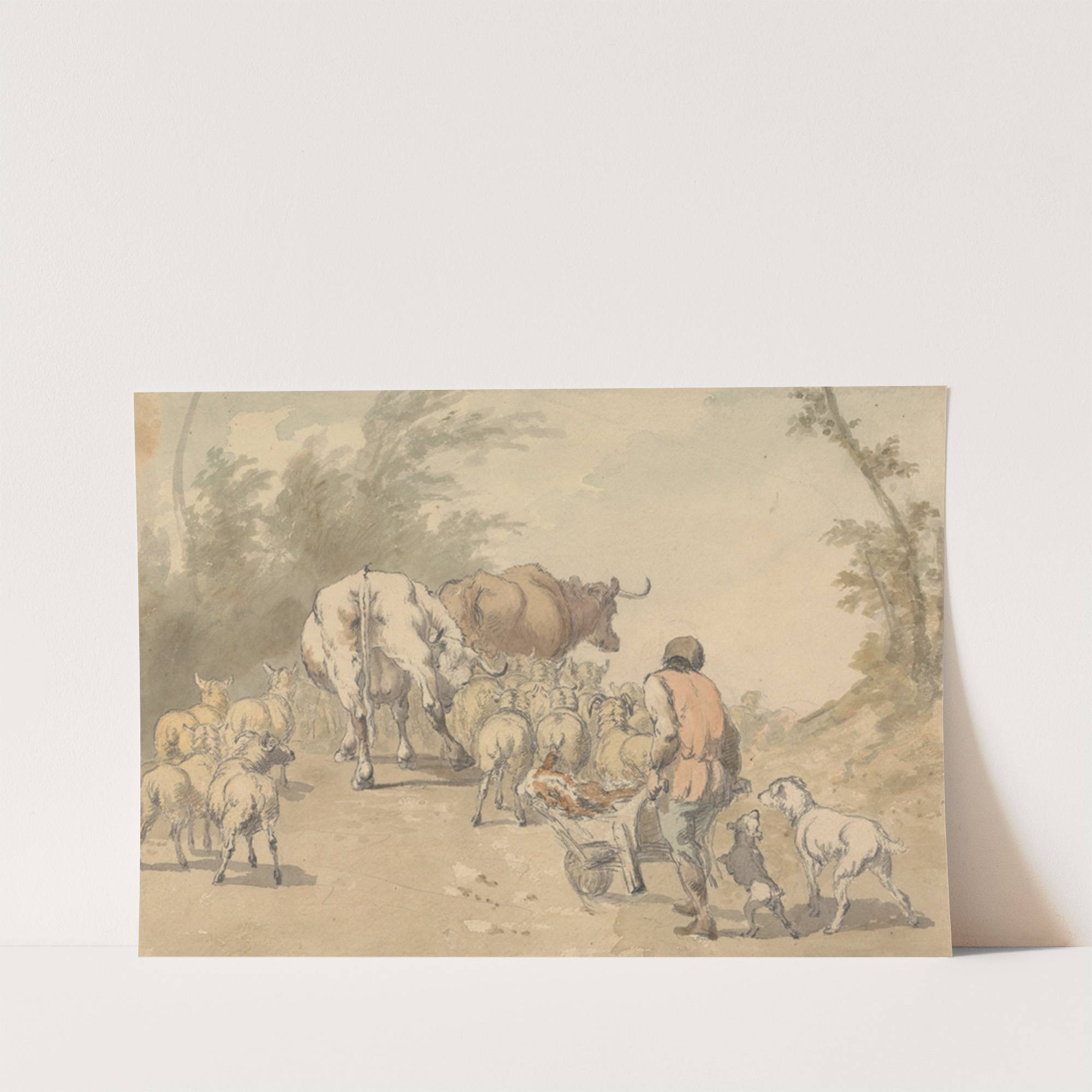 Drove of Sheep and Cows by Robert Hills - Wall Art Print