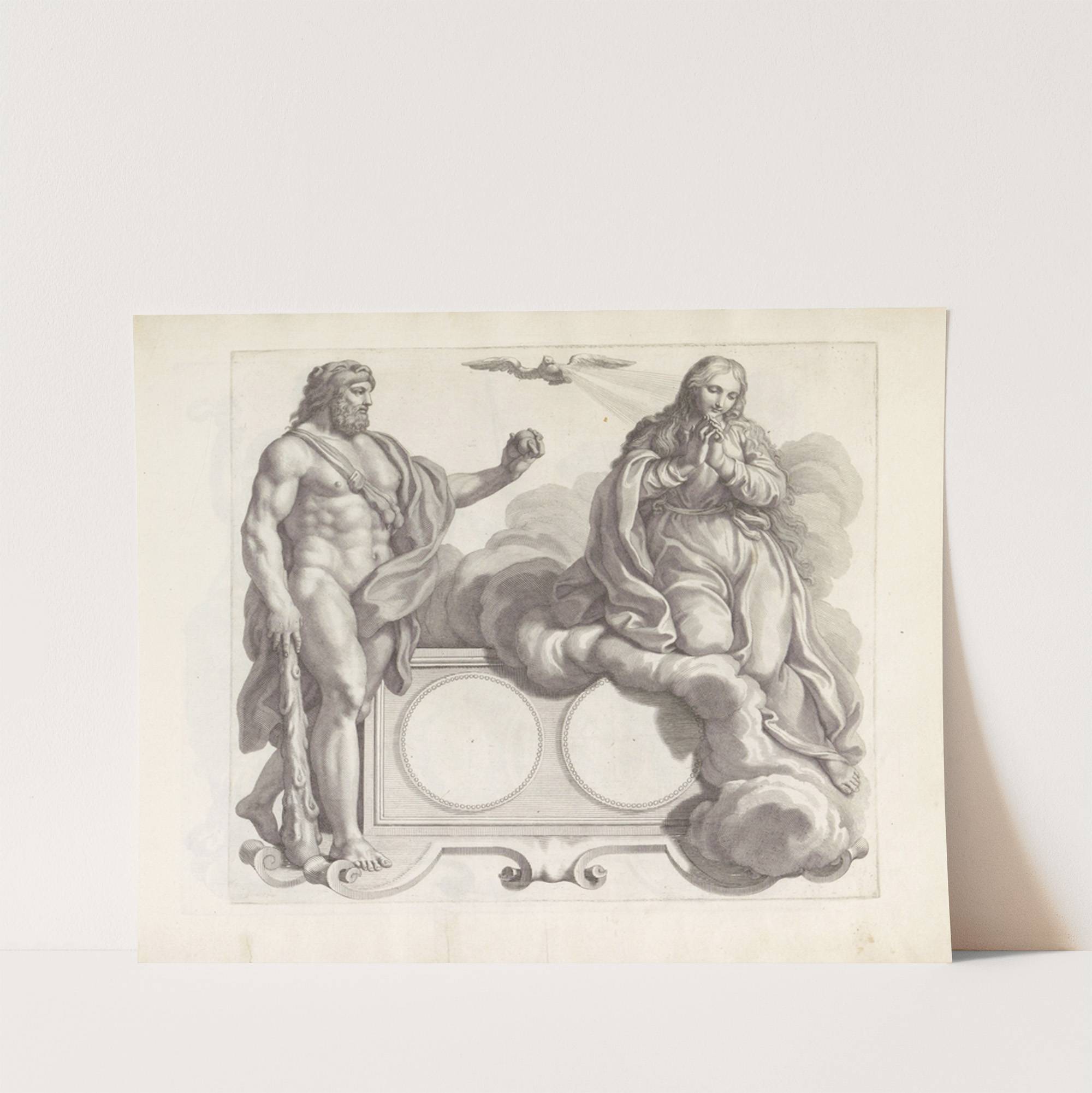 Blanco medaillon en de personificaties van Dapperheid en Heiligheid (1673-1743) by Robert van Audenaerde - Wall Art Print