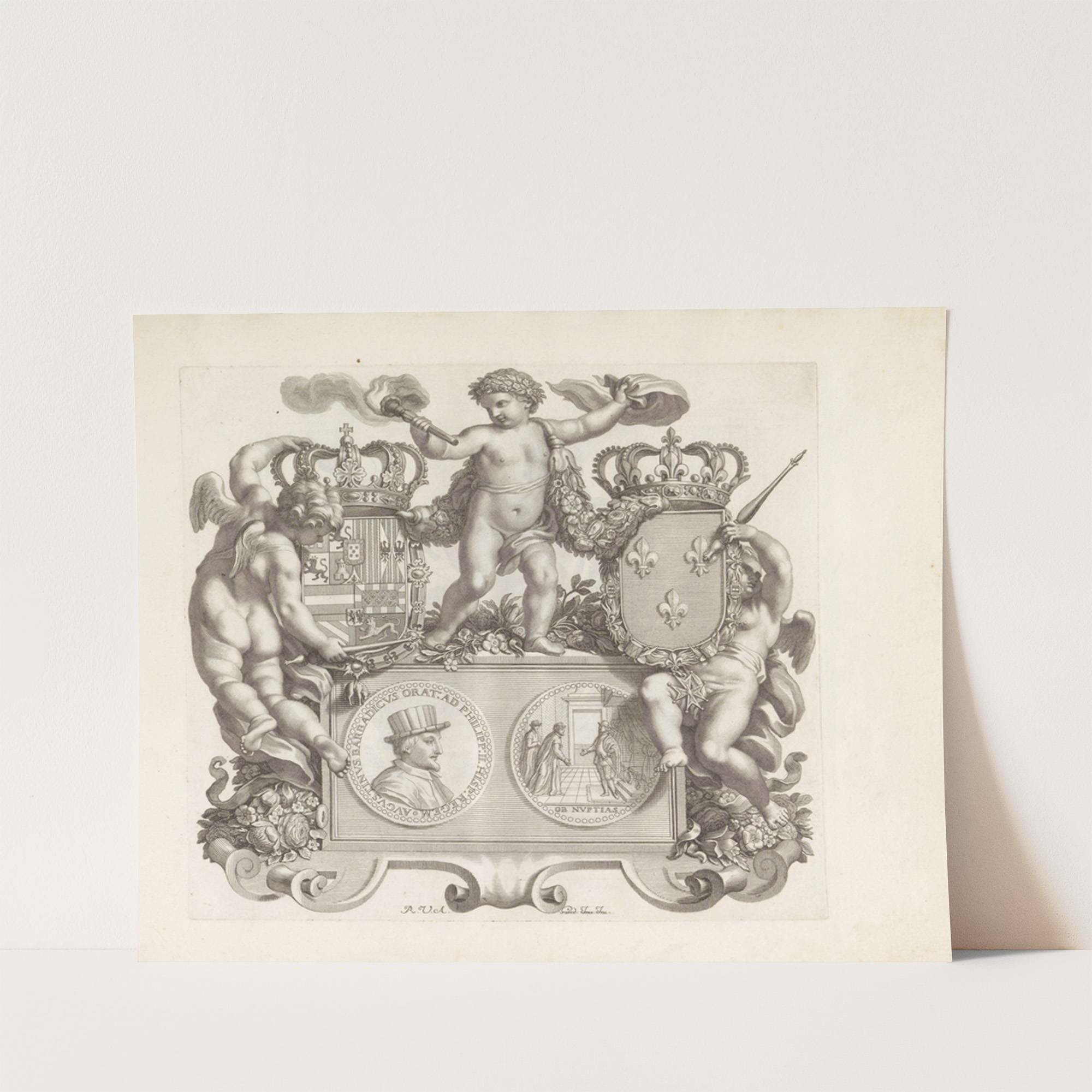 Portret van Agostino Barbarigo met putti en twee wapenschilden (1673-1743) by Robert van Audenaerde - Wall Art Print