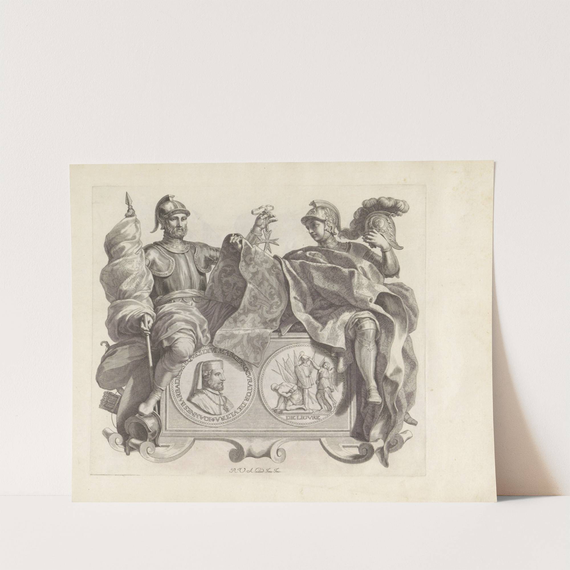 Portret van Giovanni Barbarigo en een geharnaste man en vrouw (1673-1743) by Robert van Audenaerde - Wall Art Print